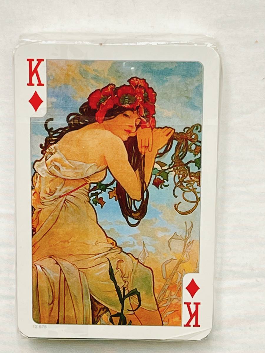 | アルフォンス・ミュシャの画像を使ったトランプです。 新品ですが、箱にイタミがあります。 サイズ:9×6㎝ | |||