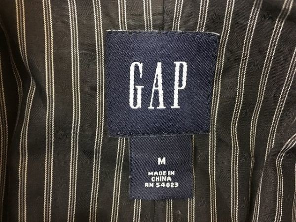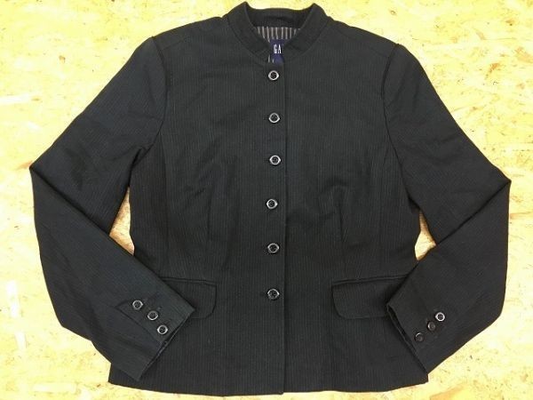 | 商品タイトル | GAP ギャップ Mサイズ(肩幅約39cm) レディース ジャケット バンドカラー ストライプ 総裏地 肩パット 長袖 ブラック系 黒系 |