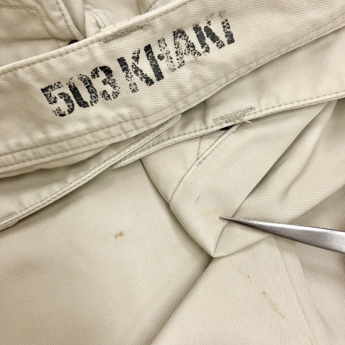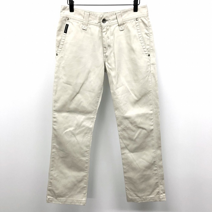 商品状態・ディテールなど | (※実測寸法など、多少の誤差はご容赦下さい。) (※商品は全て畳んで保管しております。保管による畳み皺などはございます。その点ご了承下さい。) ●気になったダメージの場所と種類: ・所々:シミ ・全体:- ・フロントポケット:- ・バックポケット:- ・ヒップ:- ・腿:- ・膝:- ・脛:- ・裾:- ・裏地:- ・内側:- ●その他ディテール:- ●付属品など:- ●その他:- |