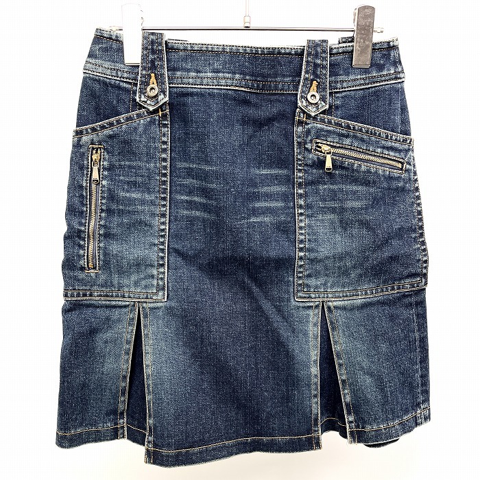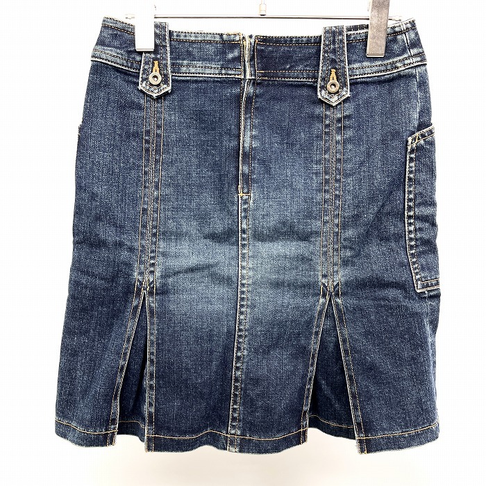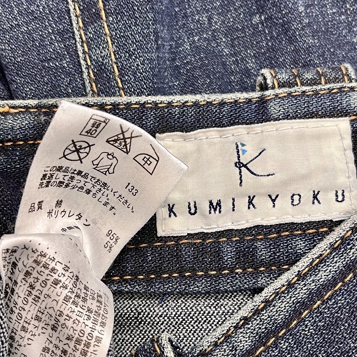 | 商品タイトル | KUMIKYOKU 組曲 クミキョク 1(W59-63/H87-91) レディース デニムベイカースカート USED加工 無地 ひざ丈 綿×ポリウレタン ブルー 青 |