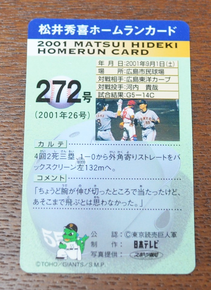 2001年 松井秀喜 55 巨人 プロ野球 ホームラン 272号 サイン入り トレーディングカード 美品