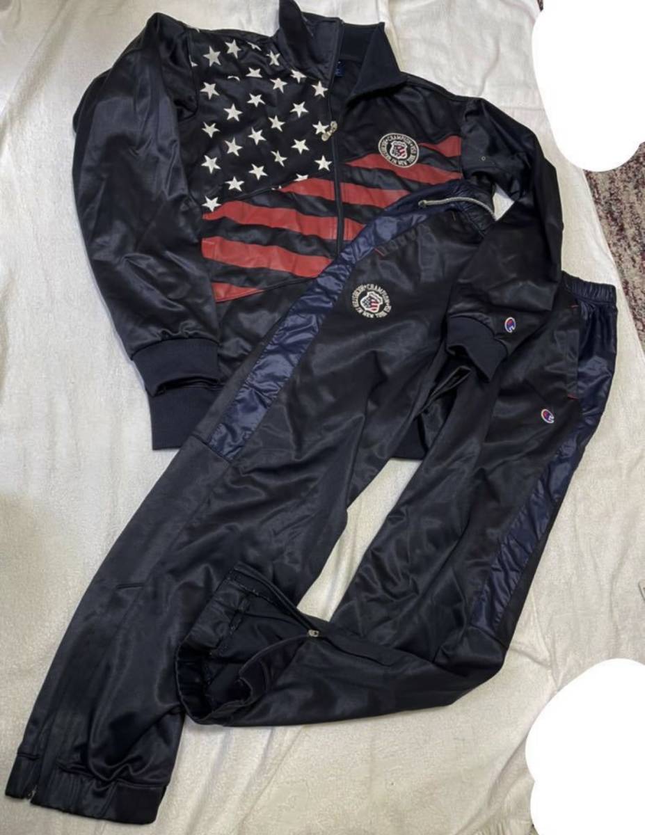 Champion/チャンピオン/上下セット/ジャージ素材/光沢感/長袖トラックジャケット/ ジャケットL パンツMサイズ スター 星
