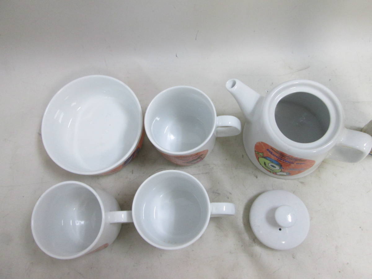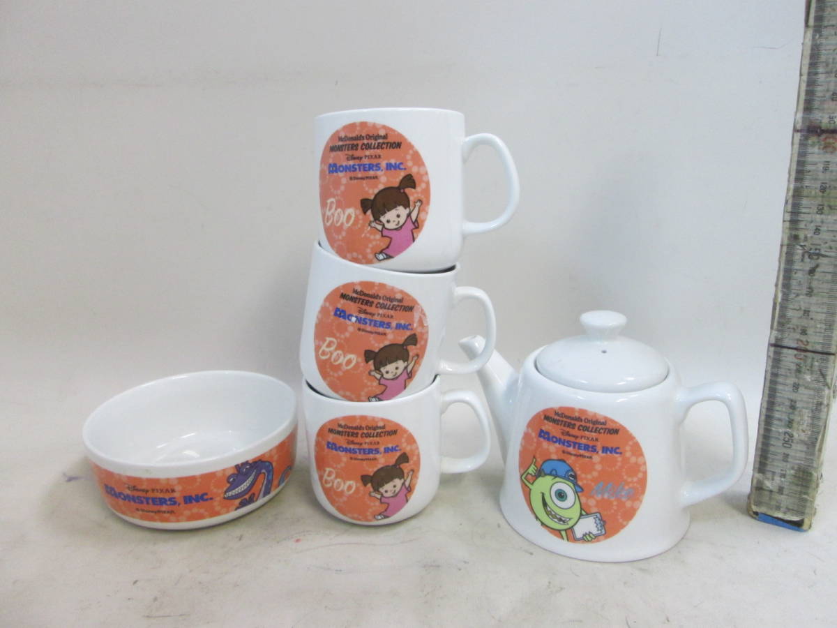 ディズニー モンスターズインク マイク&ブー  陶器 ティーポット マグカップ  皿 5コ 未使用か美品