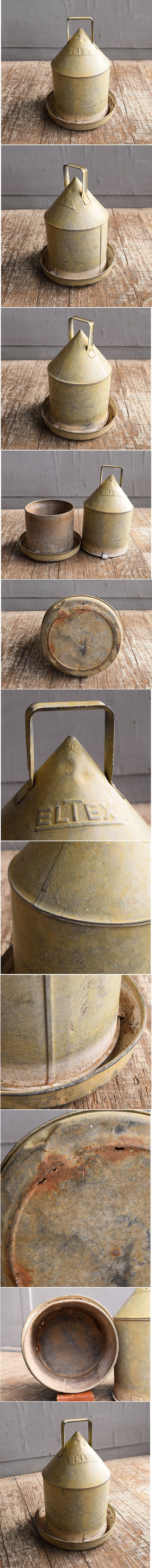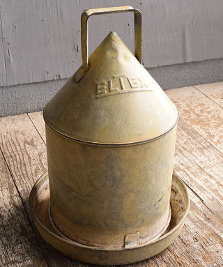 イギリスの蚤の市で見つけてきた古い、ブリキ製 バードフィーダー(ニワトリ用?)です。 使い込まれた風合いが素敵です。 所々へこみがありますが、 全体的な状態は、大きなダメージ無くコンディション良好です。 所々穴が開いています(画像参照)