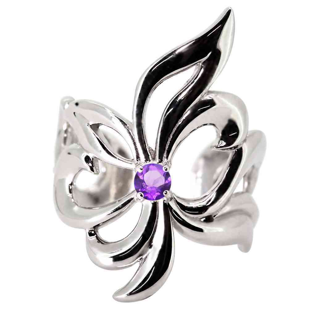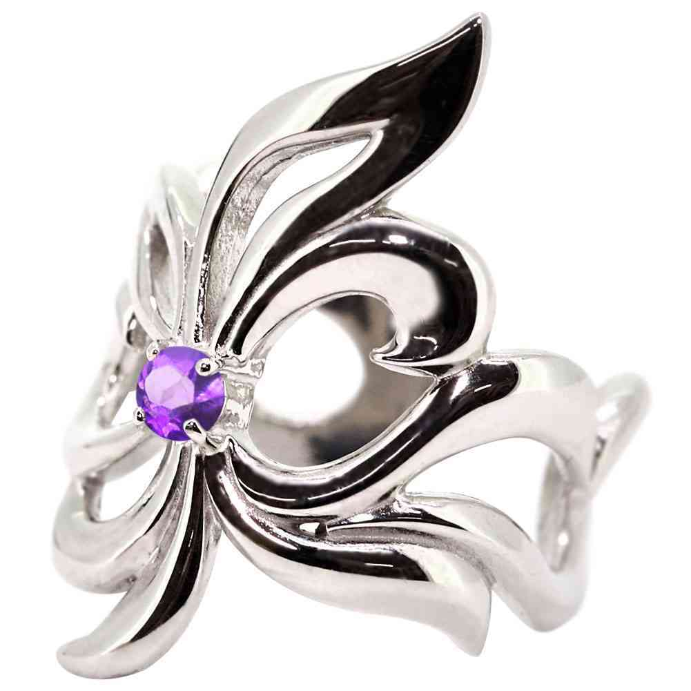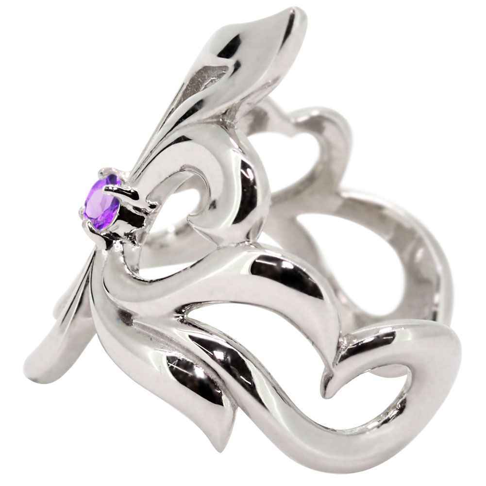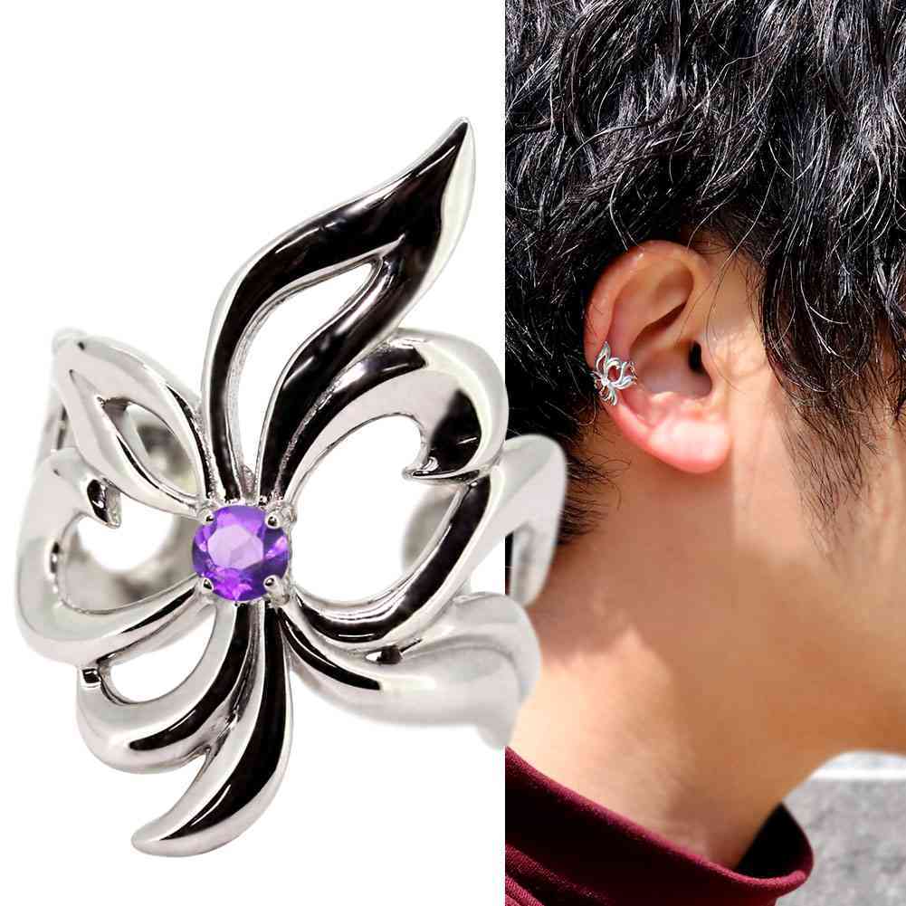 2月誕生石アメジストを使用したプラチナ製の、百合の紋章(ユリ)モチーフイヤーカフです。