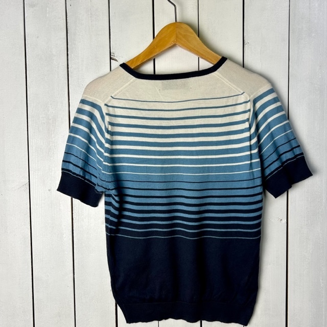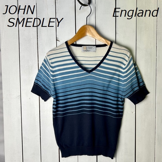 sh●527 90s~ 英国製 JOHN SMEDLEY シーアイランドコットン 半袖 ボーダーニットカットソー オールド ヴィンテージ ジョンスメドレー 薄手 春夏秋 サマーニット