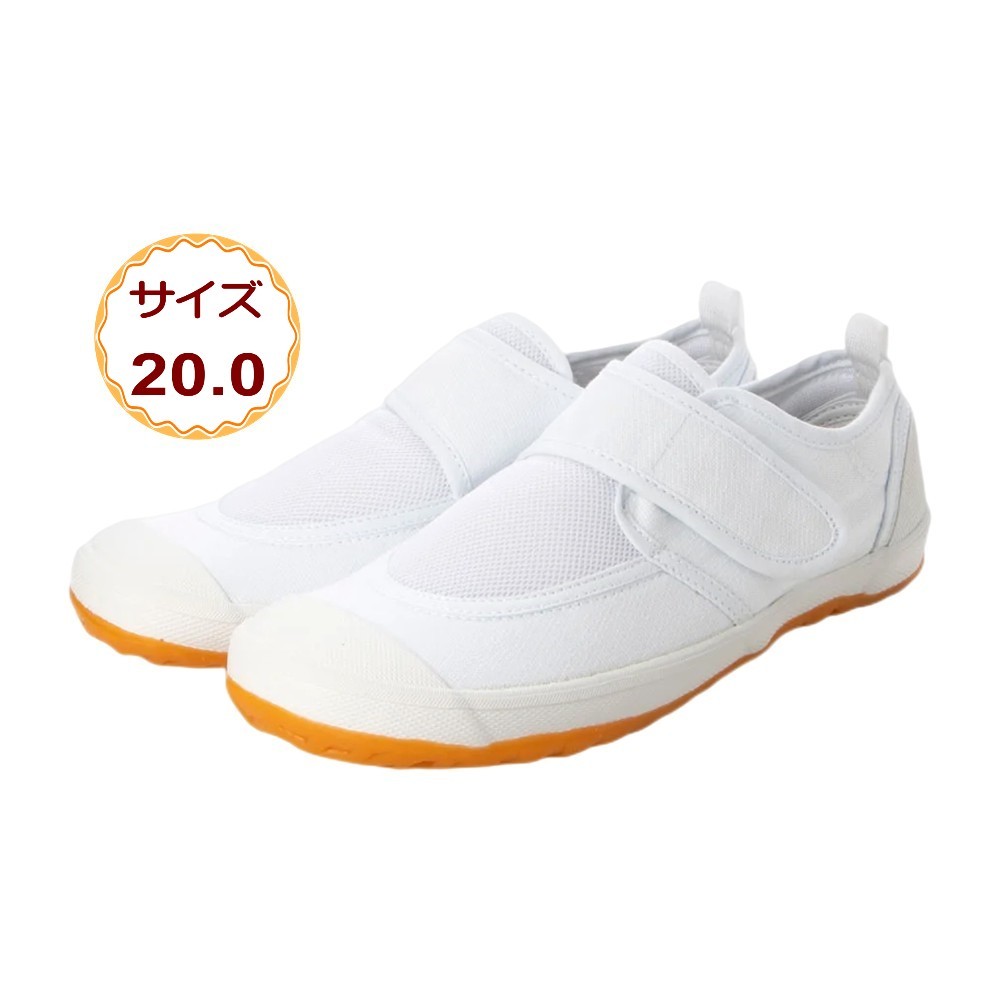 20.0cm ホワイト 白 上履き 教育 体育館 屋内 シューズ マジックテープ 名前 うわばき 幼稚園 保育園 小学校 男の子 23998-wht-200