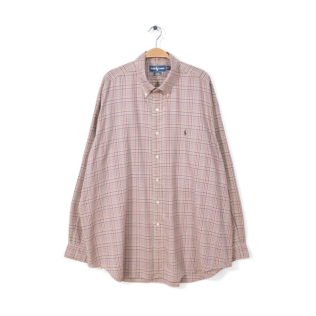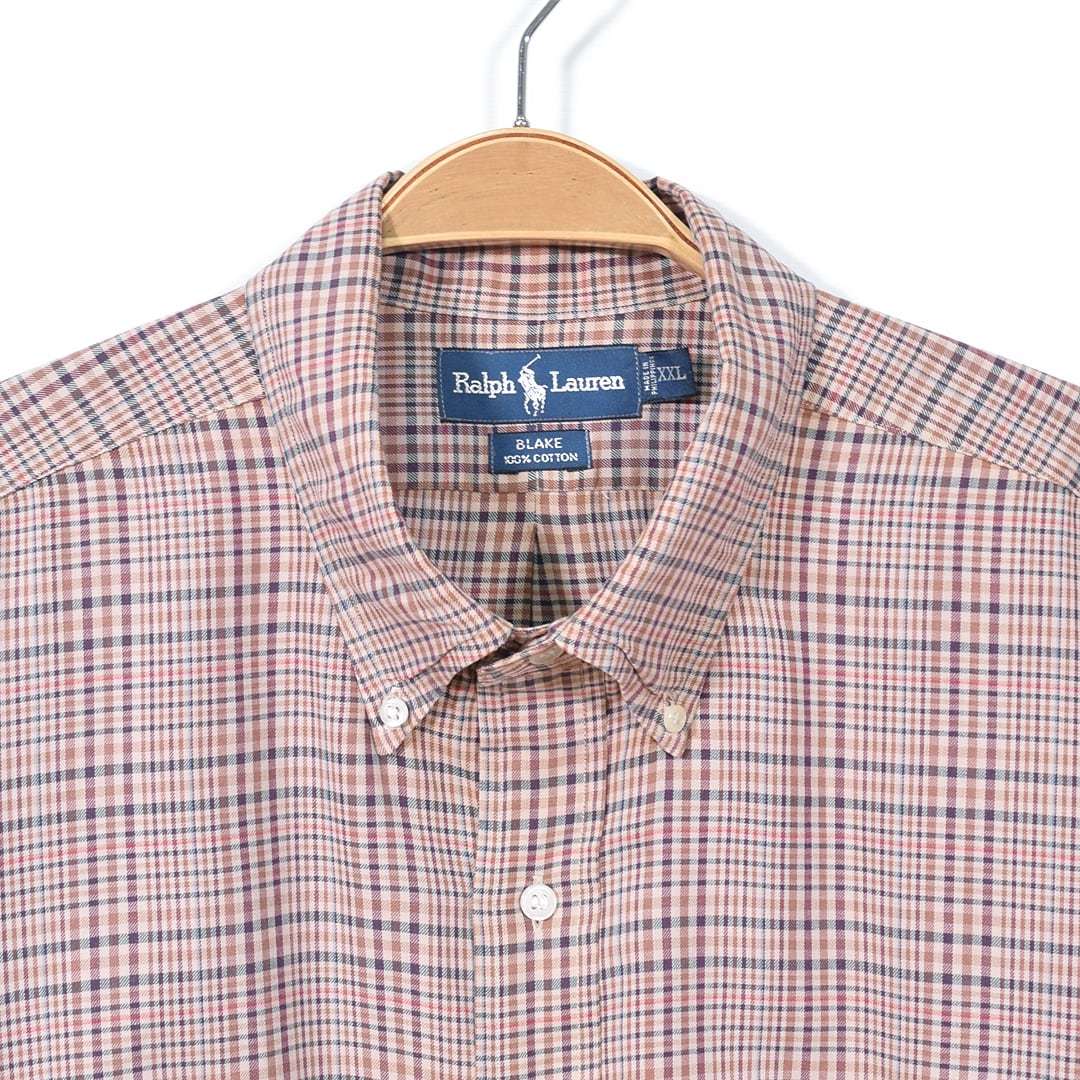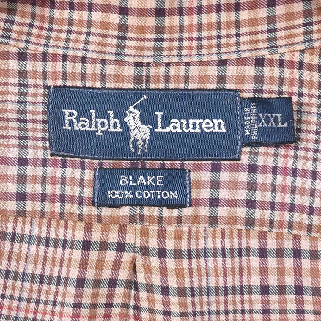 ラルフローレン ブレイク ボタンダウンシャツ 茶チェック BDシャツ BLAKE 大きいサイズ メンズXXL RALPH LAUREN 古着 @CA1056