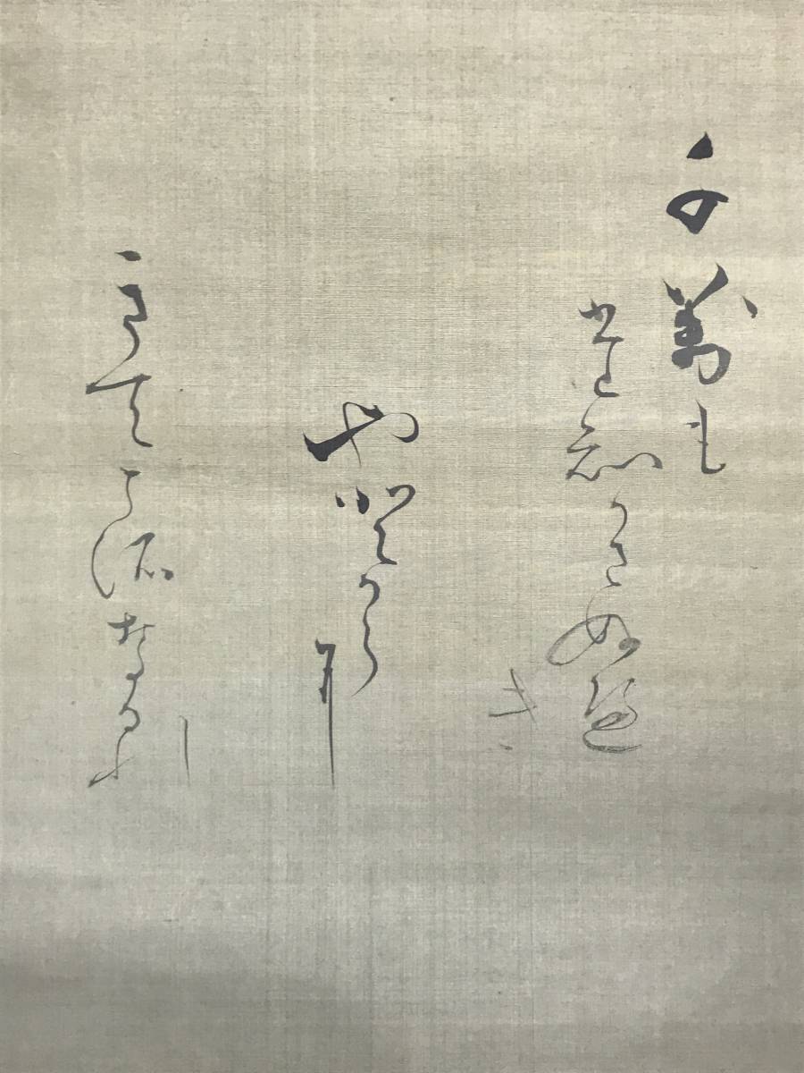 【作品状態】 本紙は絹本です。  本紙は薄汚れ、多少の汚れシミ、数カ所の虫穴補修痕あります。表装は時代感あり、全体に汚れシミ、多数の虫穴、折れ、巻シワ、右端に数カ所の欠損あります。巻裏に多数の汚れシミなどあります。状態は非常に悪いです。