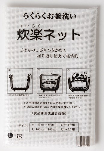 炊楽ネット、ごはんネットともに食品衛生法適合品である点は同じですが、【炊楽ネット】はシリコン樹脂加工することで旧来のごはんネットと比較して下記の優れた性能を持つ炊飯ネットに仕上がりました。(メーカーのテスト結果です)