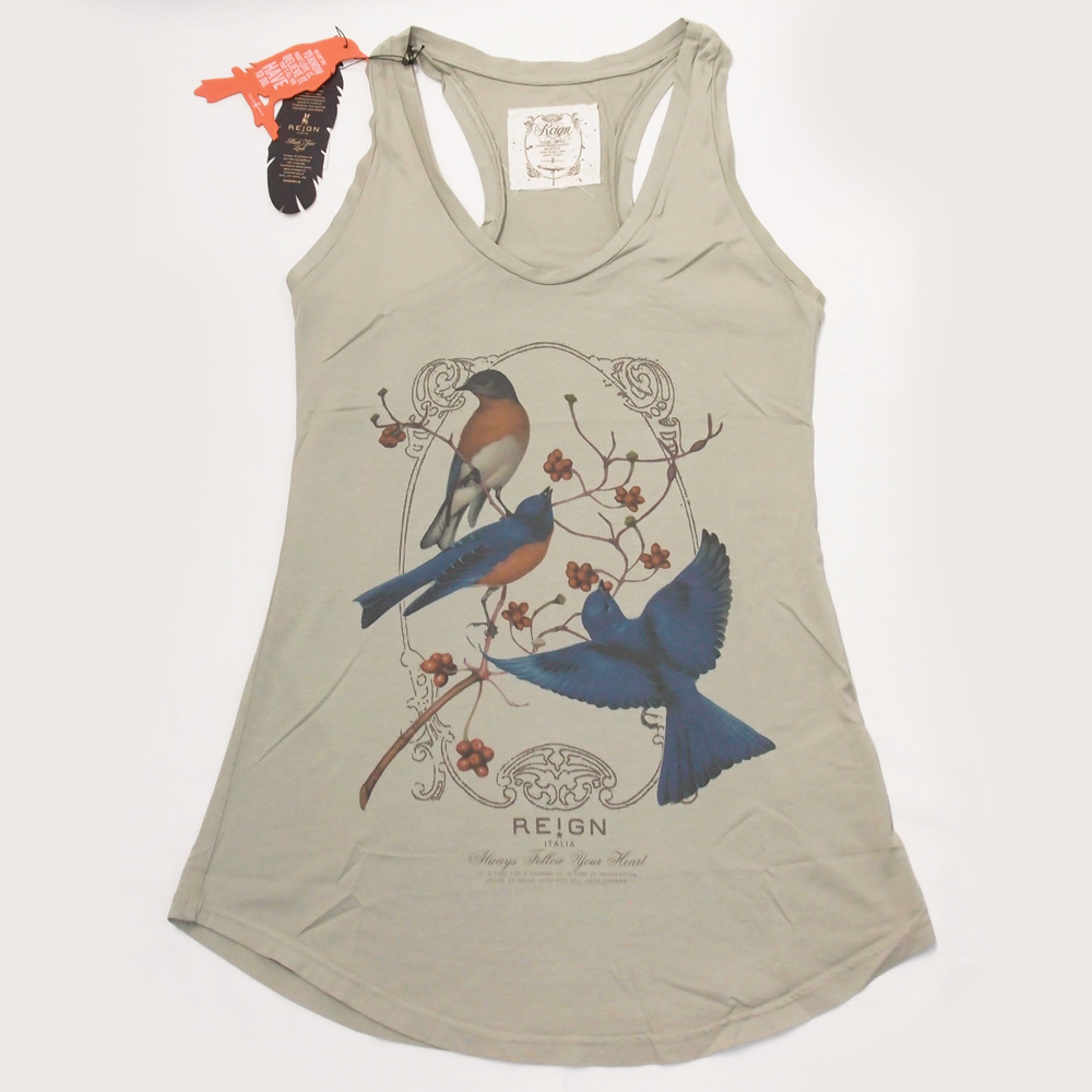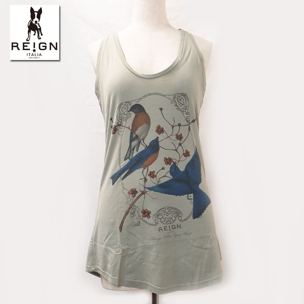 新品 REIGN レディース プリント タンクトップ グリーン M