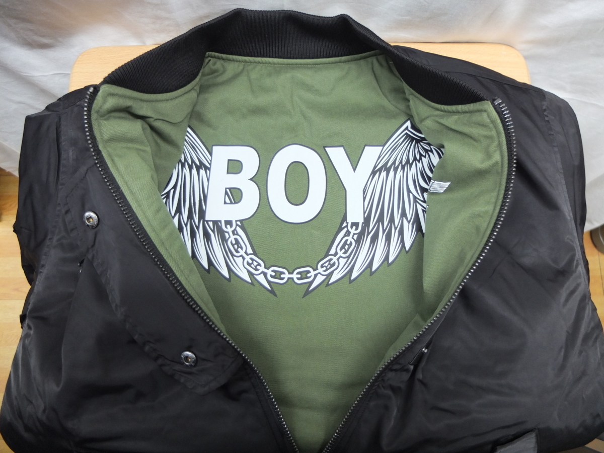 英国ストリートカジユアルブランドBOY LONDON(ボーイロンドン)のMA1型リバーシブルフライトジャケットを出品致します。表地に上質で丈夫なナイロンツイル、裏地に綾織綿布を使用し防風、保温性も高いと思います。色々なボトムに合わせて楽しめる汎用性の高いアイテムだと思います。素材の特性、店頭陳列品の為、生地のシワ等がありますのでご理解の上、ご入札お願いいたします。格安にてお出ししますので、ノークレーム、ノーリターンにてお願い致します。