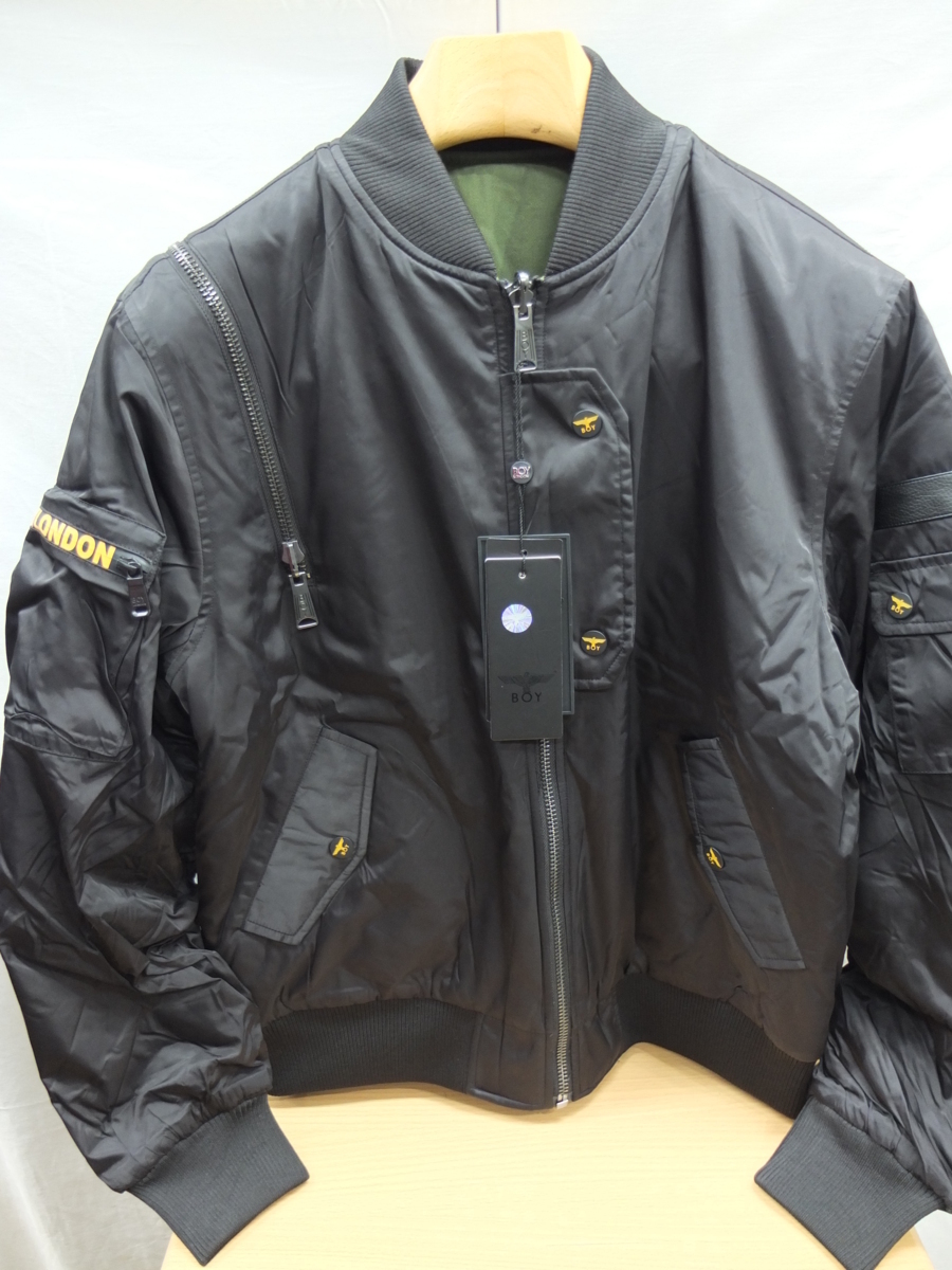 送料無料!フライトジャケット ブルゾン リバーシブル MA-1型 黒Xグリーン系カーキ Lサイズ相当 英国BOY LONDON★未使用格安!