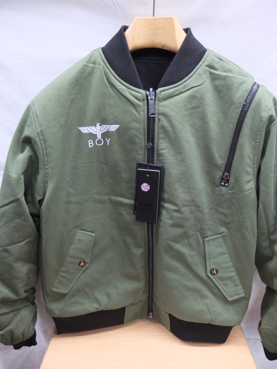 ★送料割引!フライトジャケット ブルゾン リバーシブル MA-1型 黒X緑系カーキ S表示 Lサイズ相当 BOY LONDON★未使用格安!