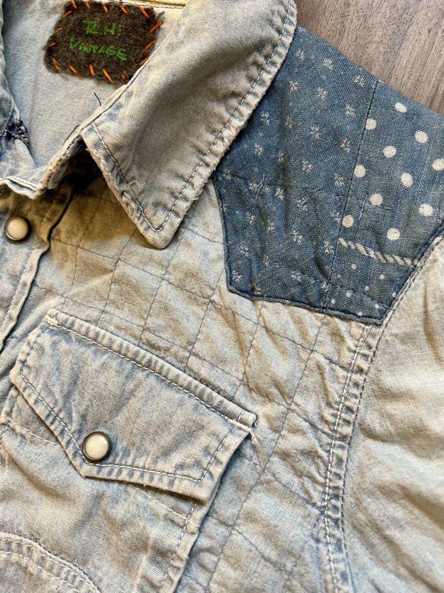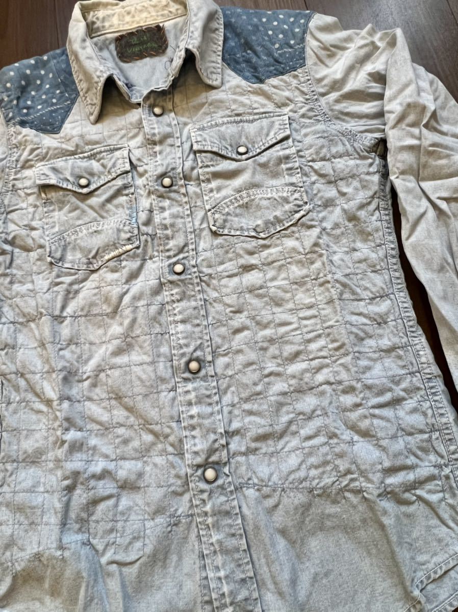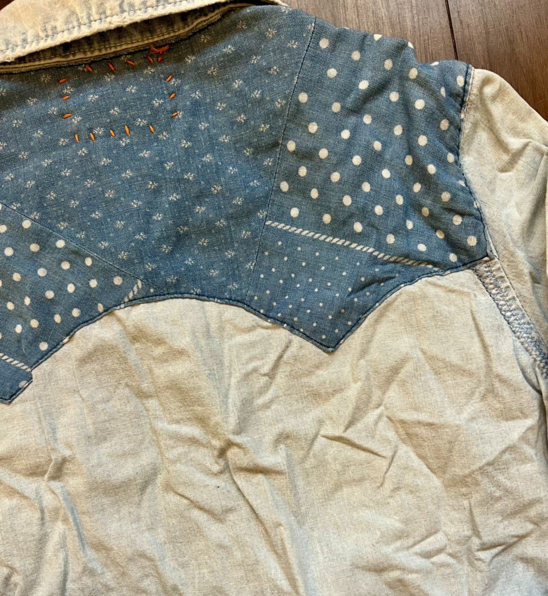 元々ヴィンテージ素材を使って作られてるものなので、色抜け等も素材の1つでこれからまだまだ着用する事により自分色にシャツが変化して行くと思います。