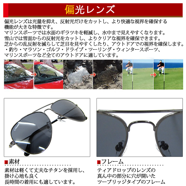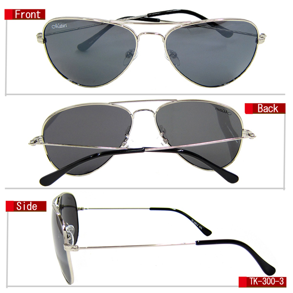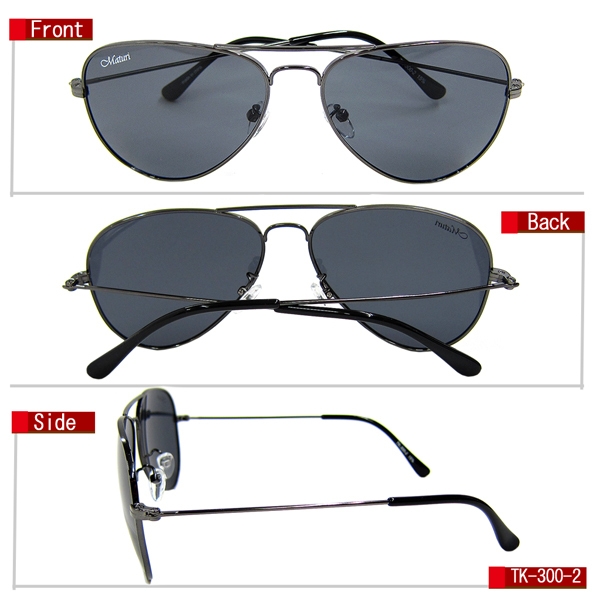 | 長年に渡り絶大な支持を受けている『ティアドロップサングラス』 ティアドロップのレンズの真ん中の部分に穴が開いたツーブリッジタイプのレアフレームです。 素材は軽くて丈夫なチタンを採用し、掛け心地も良く長時間の着用にも適しています。 どんなファッションにも合わせやすくユニセックスでお使い頂けるアイテムです。 オシャレを楽しむだけでなく、紫外線を99%カットしてくれるので、お出かけの際の紫外線対策としてもオススメです。 一切妥協せずファッション性、実用性を重視し、選び抜かれた素材でしあがったMaturiサングラスを是非体験して頂きたい。 【偏光レンズとは】 眩しさや反射光を、より効果的にカットできるレンズです。 偏光レンズは光量を抑え、反射光だけをカットし、より快適な視界を確保する機能が大きな特徴です。 マリンスポーツでは水面のギラツキを軽減し、水中まで見えやすくなります。 マラソン・釣り・ゴルフ・ツーリング・ウィンタースポーツなどに適しています。 下記よりカラーをお選び下さい。 (落札時、オーダーフォームにてご希望カラーをお選び下さい。ご連絡を頂けない場合は当店で選択させて頂きます。) ■TK-300-1:レンズ/グリーン、テンプル/シルバー、可視光線透過率15% ■TK-300-2:レンズ/グレー、テンプル/ガンメタ、可視光線透過率15% ■TK-300-3:レンズ/グレーミラー、テンプル/シルバー、可視光線透過率10% ■サイズ:(約)レンズ横5.6cm×縦4.8cm、フレーム幅(外側)13.7cm (実寸につき誤差はあらかじめご了承ください) ■素材:レンズ(紫外線UVカット約99%)、フレーム/チタン ■紫外線透過率:1.0%以下 ■付属品:専用ケース ■新品・未使用 ■定価27,800円 ※ご覧のモニターやプラウザの設定、照明等により、画像と実物の色合いが、若干異なる場合が御座います。 ※製造上の過程により商品によっては細かな傷がある場合が御座います予めご了承下さいませ。 | |
