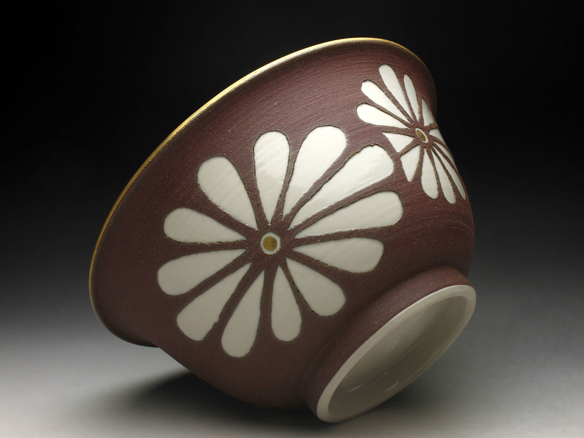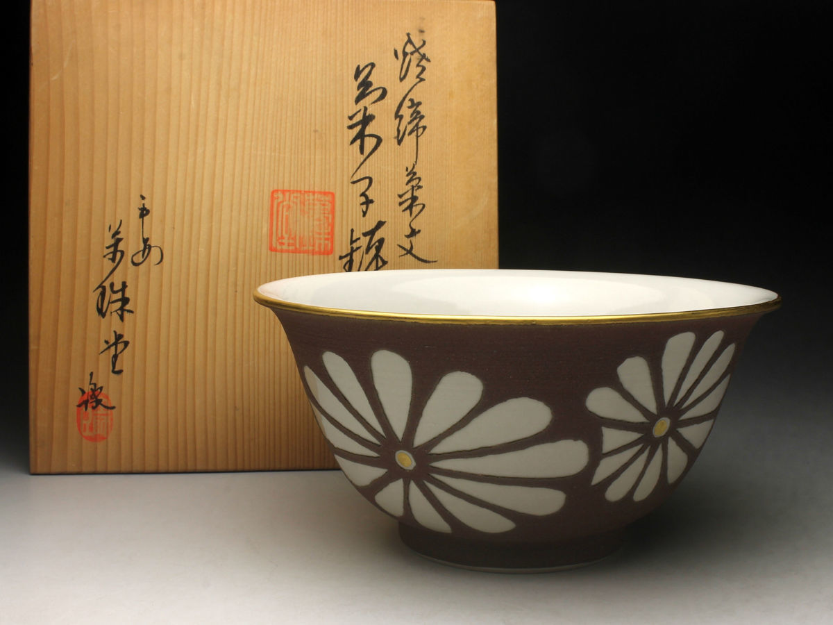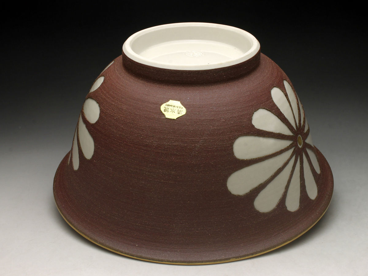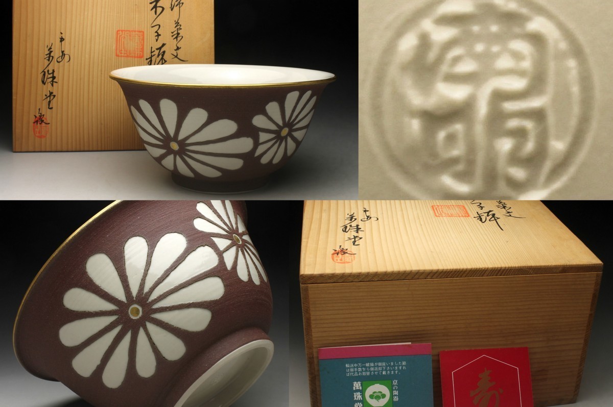 【余韻】 清水焼 南明窯 作 焼締菊文 菓子鉢★共箱 無傷美品<同梱可>