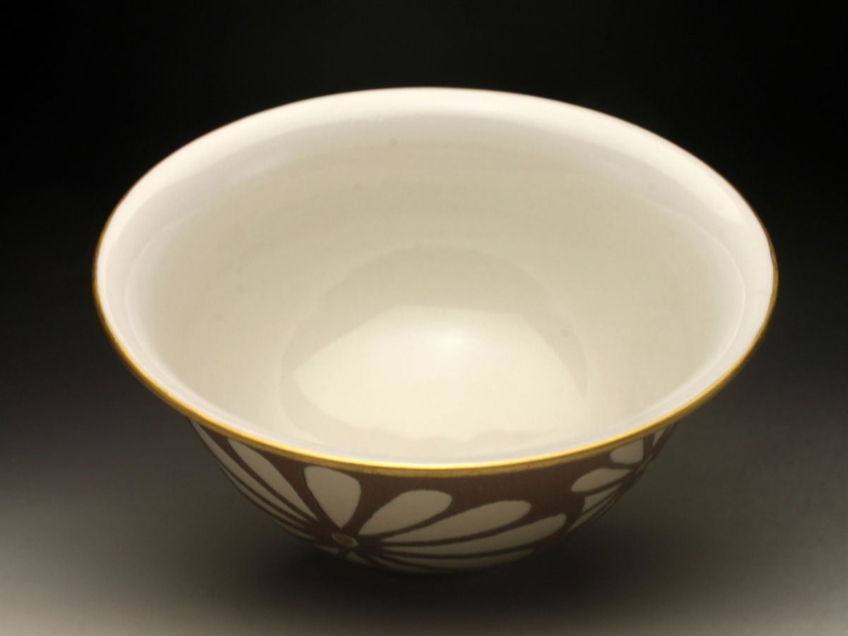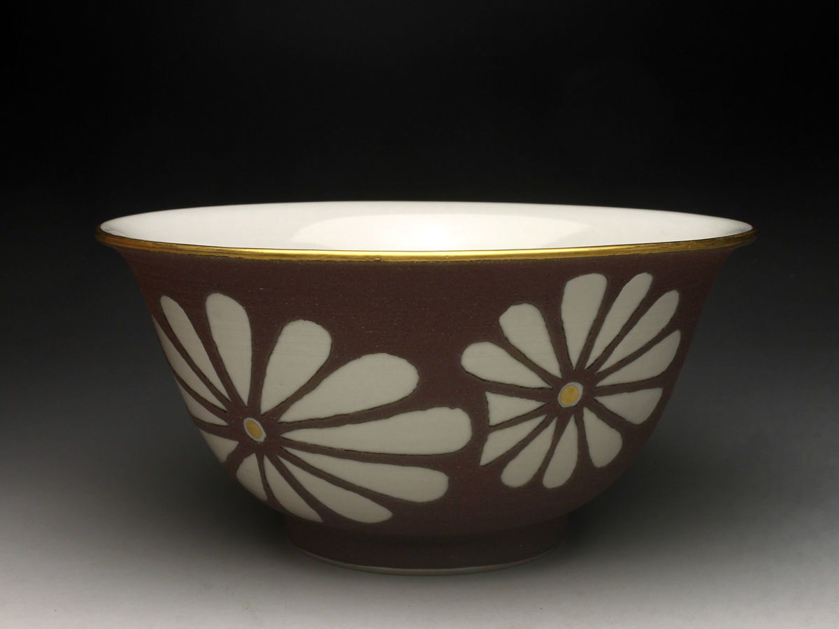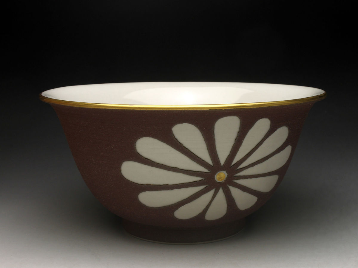 【余韻】 清水焼 南明窯 作 焼締菊文 菓子鉢★共箱 無傷美品<同梱可>