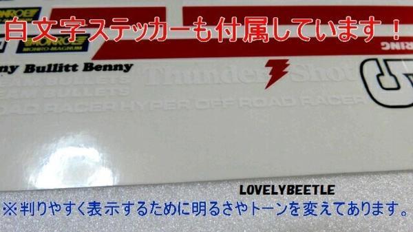 1/10 サンダーショット 旧バージョン ビニールステッカーセット THUNDER SHOT 4WD レーシングバギー オフロード チャンピオンスパークプラグ モンローショック サンダーショット 旧バージョン用のビニールステッカーセットです。 当時の純正ステッカーよりも品質は向上しています。 サンダーショットのレストアにぜひご活用ください! また再販物のサンダーショット(2005)を旧サンダーショット風に変えたい方にもオススメです! カナダ製の1/10ラジコンカー用ビニールステッカーセット。 密着性バツグン。柔らかい素材のステッカーですので局面にもシワにならずに貼ること出来ちゃうスグレモノ。 防水仕様のステッカーなのでラジコンカーのボディ以外にも貼れちゃいます! ケータイ、タブレット、その他小物類、何でもOK! ■内容物■ 1・ステッカー 1シート ■うまく貼る方法(概略)■ 1・よく切れるはさみでマークを丁寧に切り取る。 (白フチつきのマークもあります。注意してカットしてください) 2・マークの端の紙を少しだけ剥がし、折りこむ(はがした紙をカットしてもOK)。 3・貼りたい部分にマークを当てて貼り付け位置を決め、少しだけ紙はがした部分でマークを固定。 4・空気が中に入らないように・・・「少し紙をはがしてはマークを圧着」の繰り返し。 ■注意事項■ 当ステッカーは密着性が高く、柔らかい素材で出来ています。 1回貼ってしまうと・・・はがすときにマークが伸びてしまう可能性あり。 貼り直しは極力やらないようにしてください。 未使用、新品ですが、輸入時からのかすかな擦り傷、汚れ、わずかなプリントのズレ等があるかもしれません。 ご質問等ございましたらRC戦車担当のラブリーさん(ツボイ)までお気軽にお問い合わせくださいませ。 ・090-8590-0643(ツボイ携帯) ・047-586-7792 ・メールアドレス n-e-o@cd.wakwak.com 破損パーツ、不足パーツがないかを念入りに検品してから発送致します。万が一、商品に不良箇所があった場合は責任をもって良品と交換させていただきます。 |