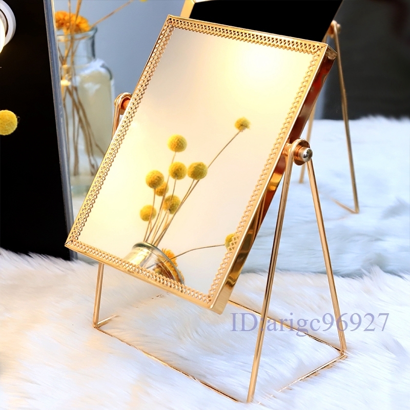 O975★新品卓上ミラー レース風のフレーム ヨーロピアン風 金属製 (角型)
