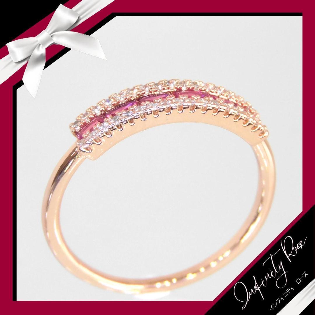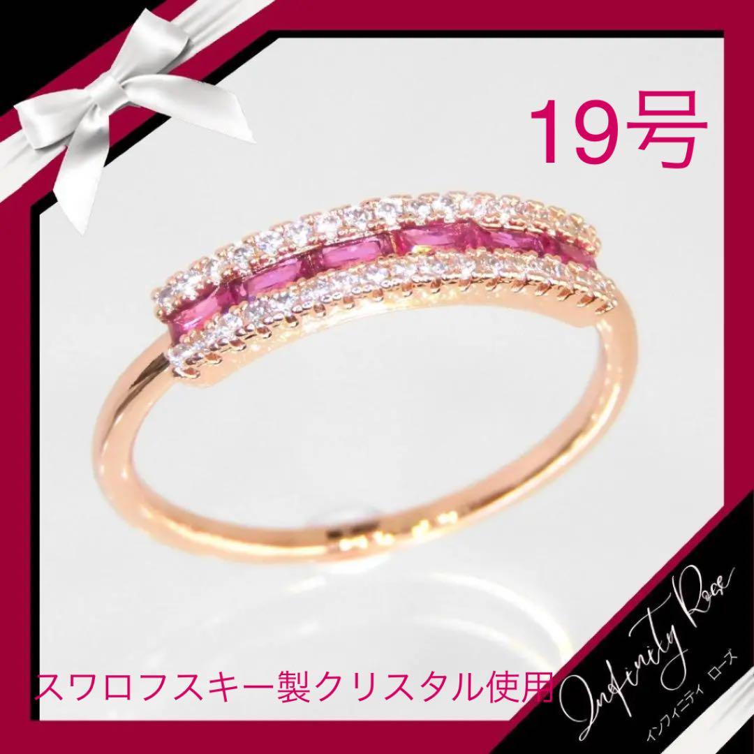(1088)19号 フリルピンクリング スワロフスキー製クリスタル使用