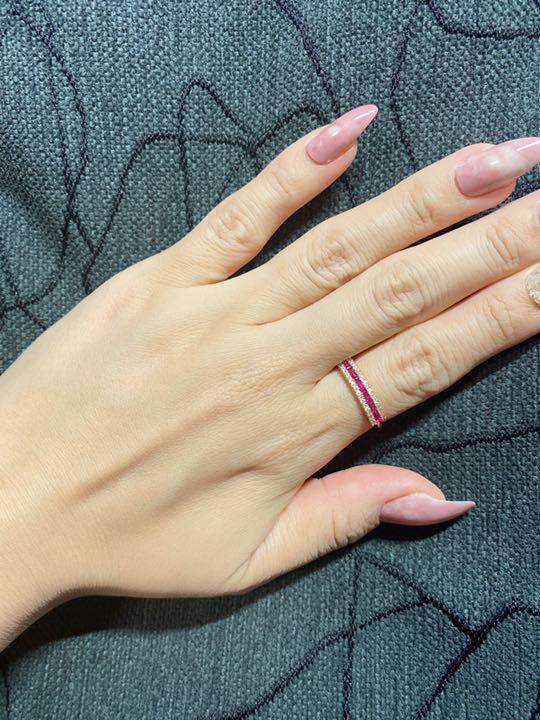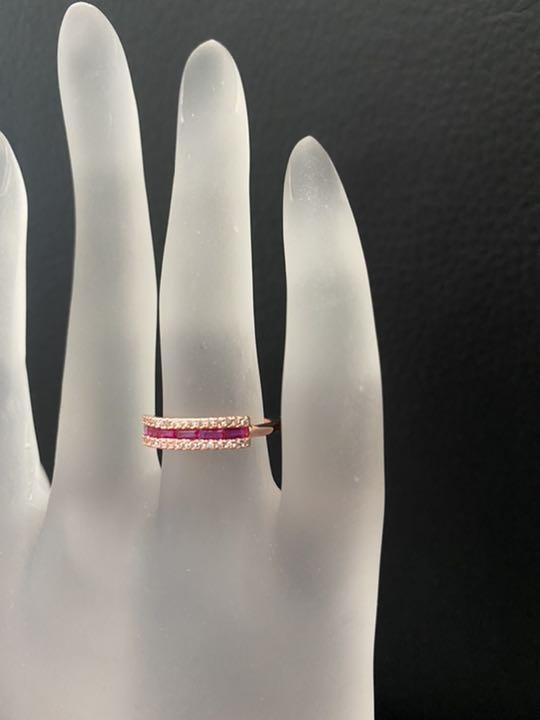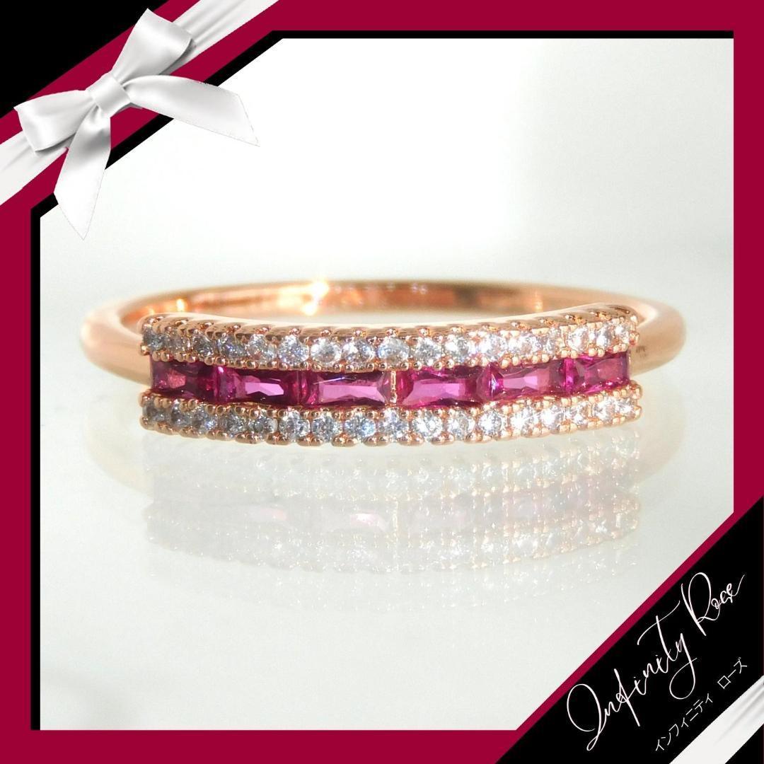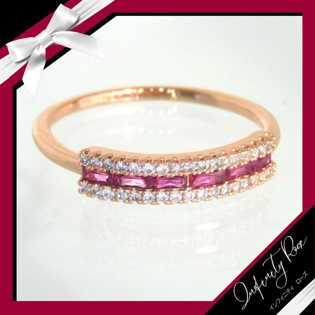 可愛いピンクゴールドベースにチェリーピンクのクリスタルと