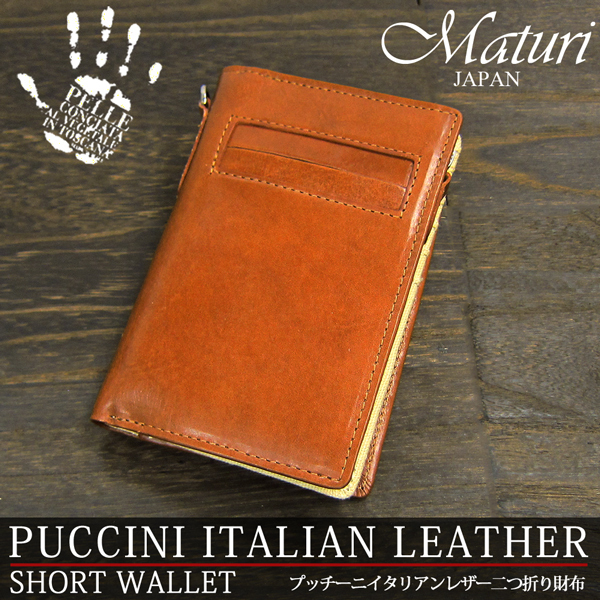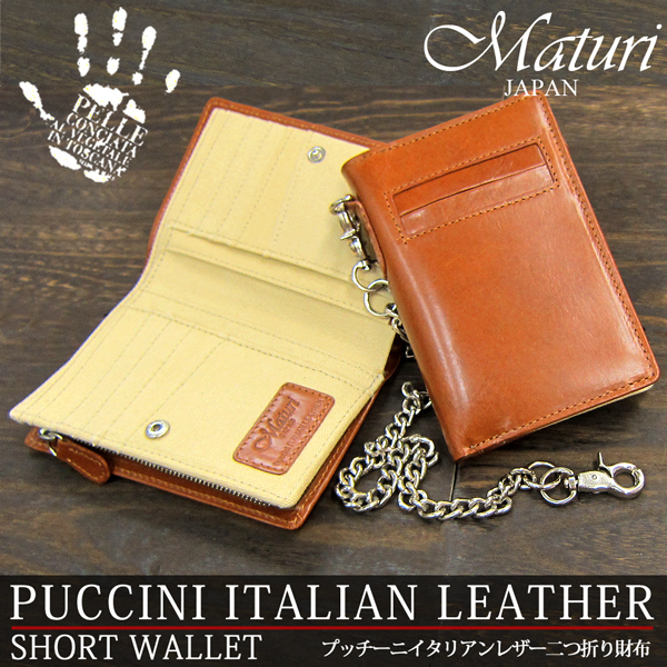 Maturi イタリアンレザー 二つ折 財布 チェーン付 045 TAN