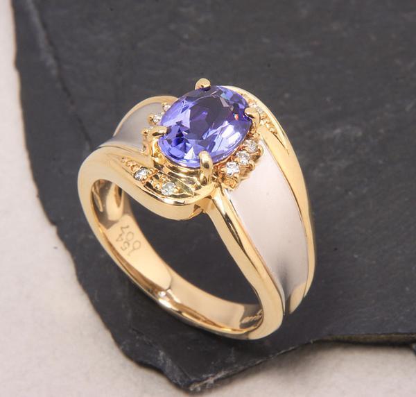 Pt900/K18★天然サファイア1.54ctデザインリングです。