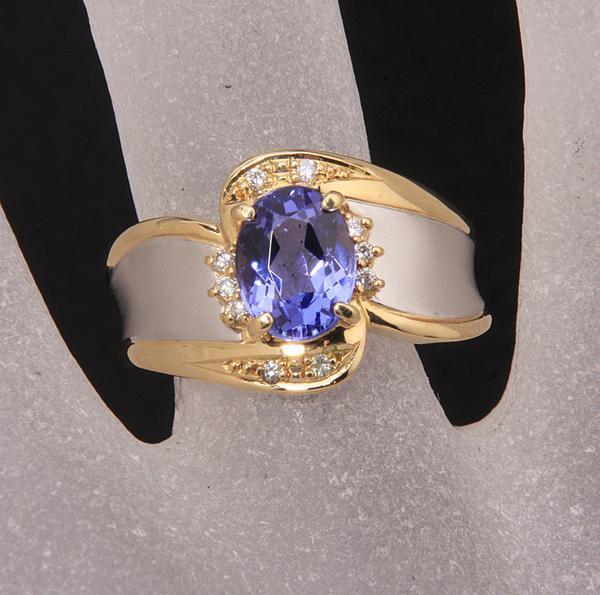 《質屋出品》Pt900/K18★天然サファイア1.54ctデザインリング★k-3541