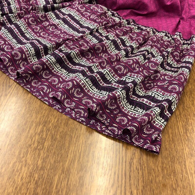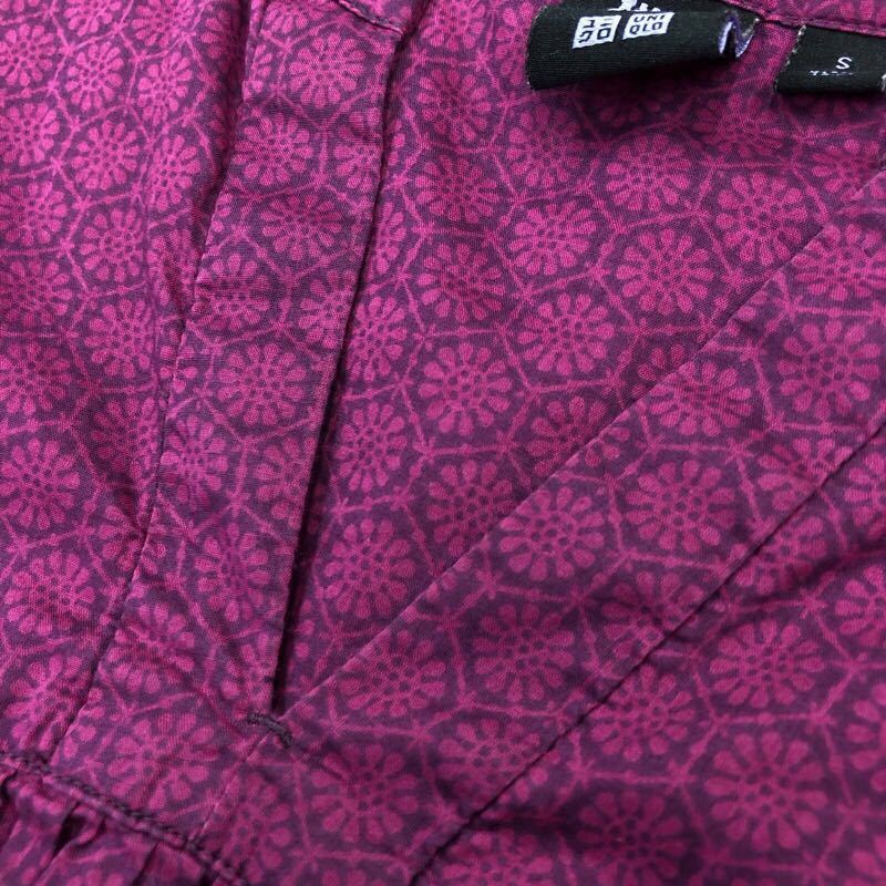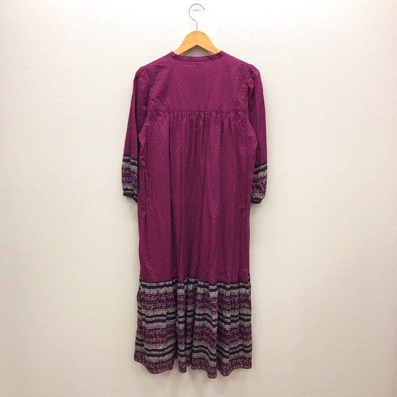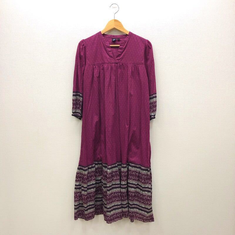 【マ148】ANNA SUI×UNIQLO 総柄ワンピース Sサイズ パープル 7分袖 ロング丈 薄地 オープンカラー ブランド古着 コラボ商品 送料無料
