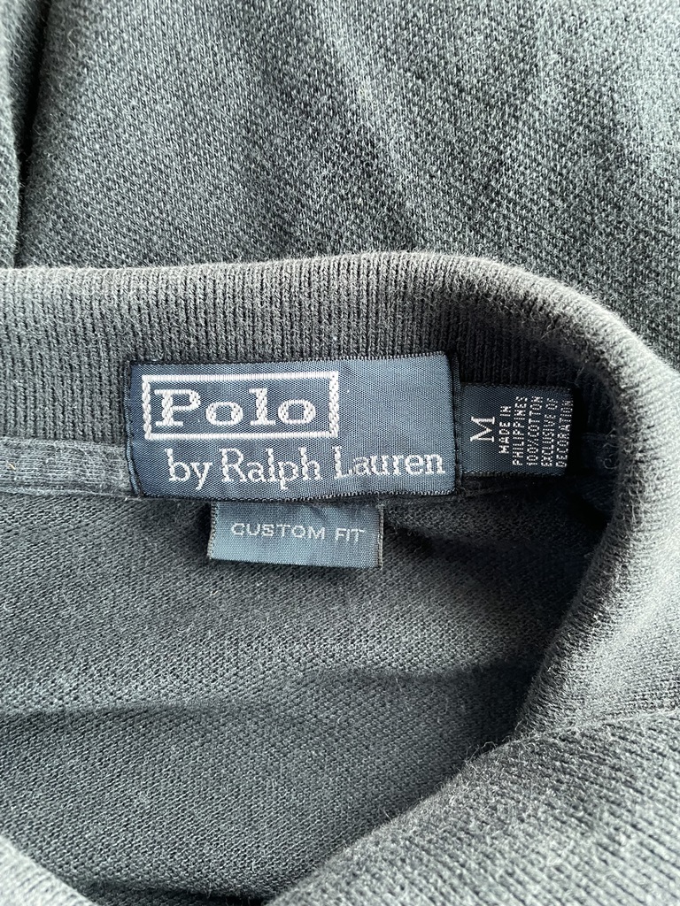 【人気】激レア Polo Ralph Lauren/ポロ ラルフローレン ポロシャツ メンズM 黒/ブラック レザーBIGポニー  メタルボタン K2099