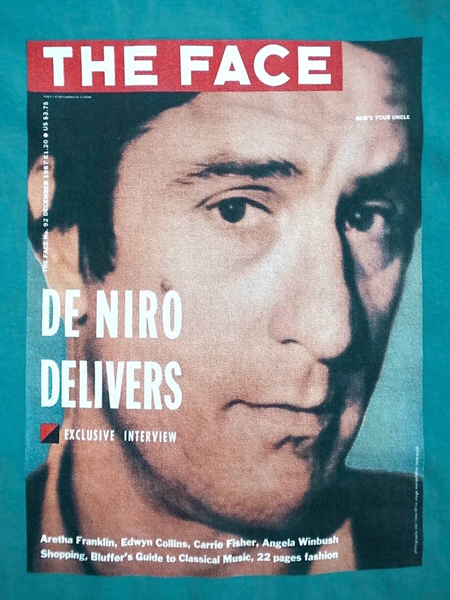 「THE FACE」No.92 DECEMBER 1987のロバート・デニーロの表紙がプリントされたTシャツになります。