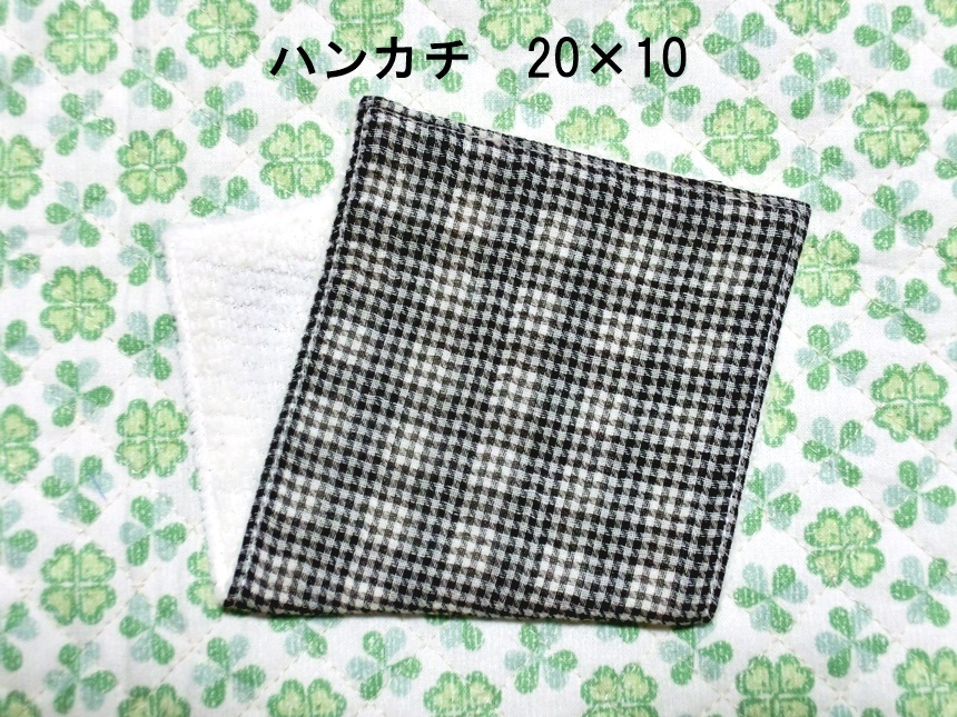 ★1141★チェック★ハーフハンカチ★20×10㎝★ダブルガーゼタオル★handmade★