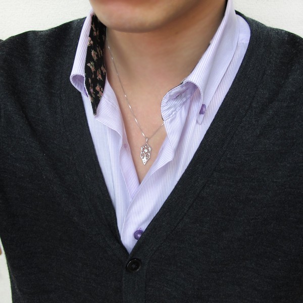 4月誕生石ダイヤモンドを使用したプラチナ製の、唐草(アラベスク)モチーフメンズ・ネックレスペンダントです。