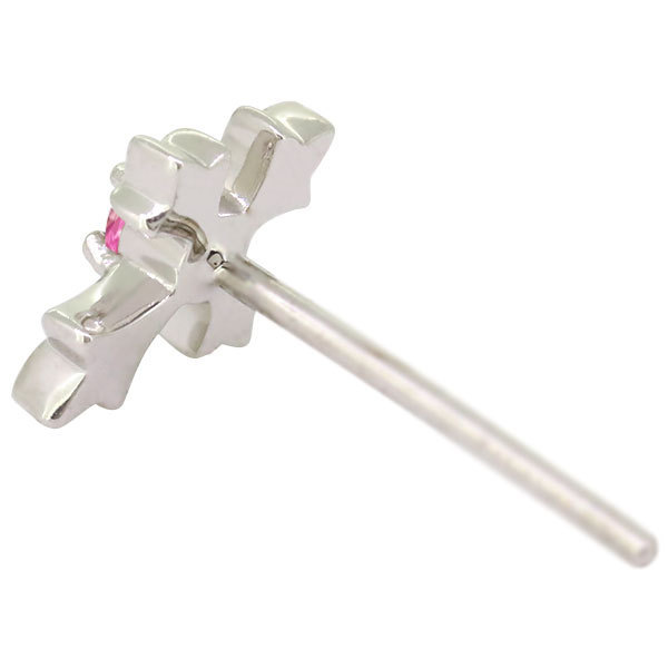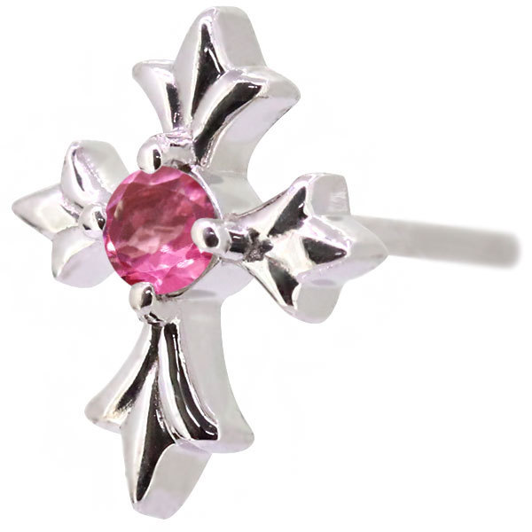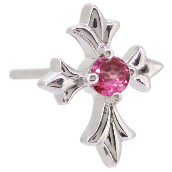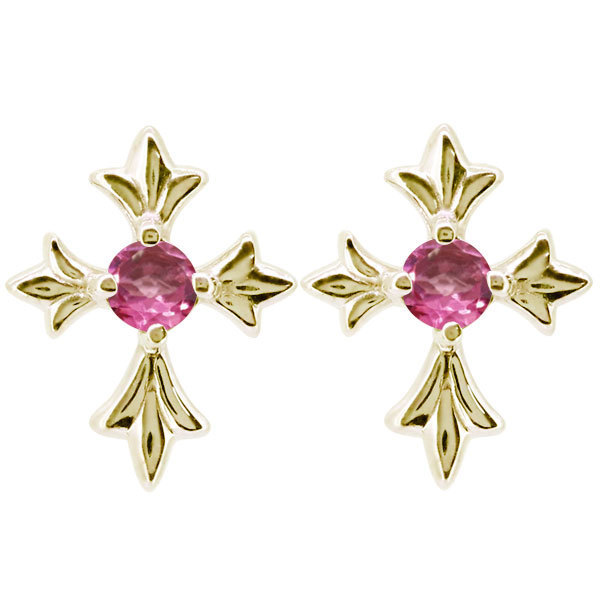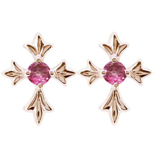 10月誕生石ピンクトルマリンを使用した10金製の、クロス(十字架)モチーフメンズスタッドピアスです。