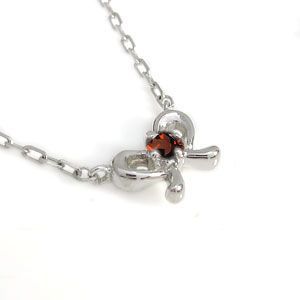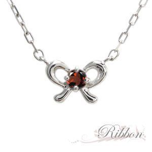 1月誕生石ガーネットを一粒使用した、10金製のリボンモチーフプチネックレスペンダントです。