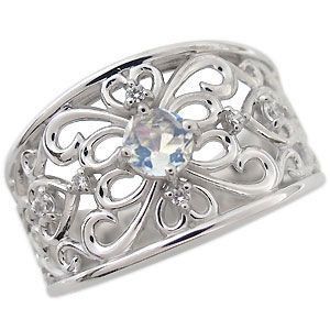 6月誕生石大粒ロイヤルブルームーンストーンを一粒使用した、唐草デザインの18金製のリング(指輪)です。