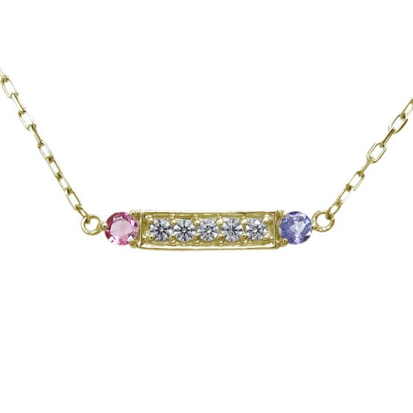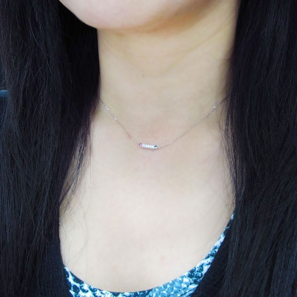 10月誕生石ピンクトルマリンを一粒使用した、10金製のラインネックレス(バーネックレス)ペンダントです。
