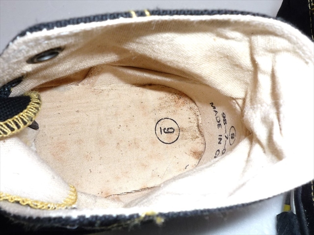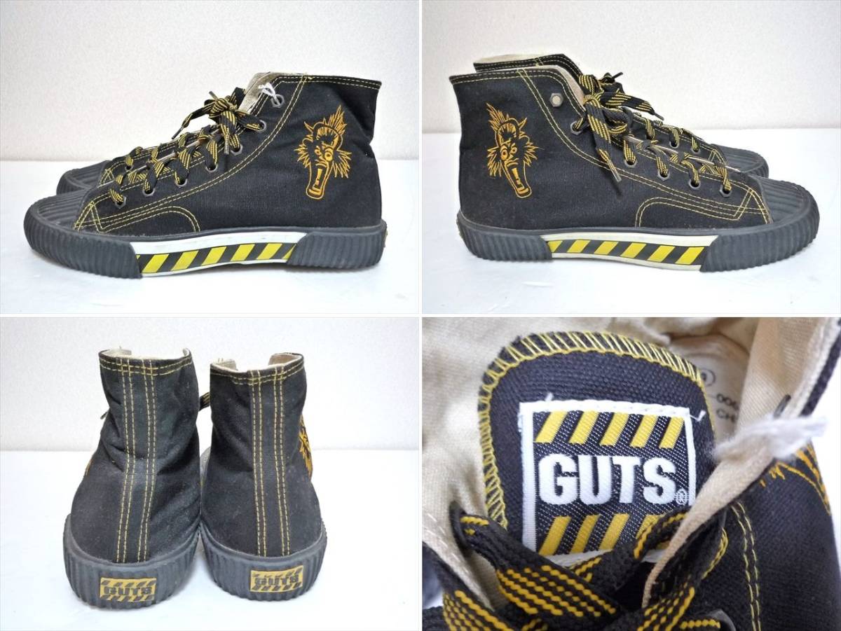 90’s ビンテージ GUTS ハイカット スニーカー 靴 キャンバス地 黒×黄色 CHINA製 9(27cm位) 刺繍 ほぼ未使用
