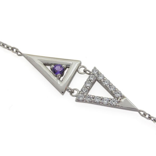 2月誕生石アメジストを使用した18金製の、トライアングルデザインのアンクレットです。