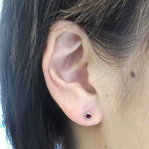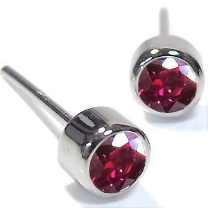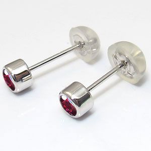7月誕生石ルビーを一粒使用したシンプルデザインのプラチナ製ピアスです。