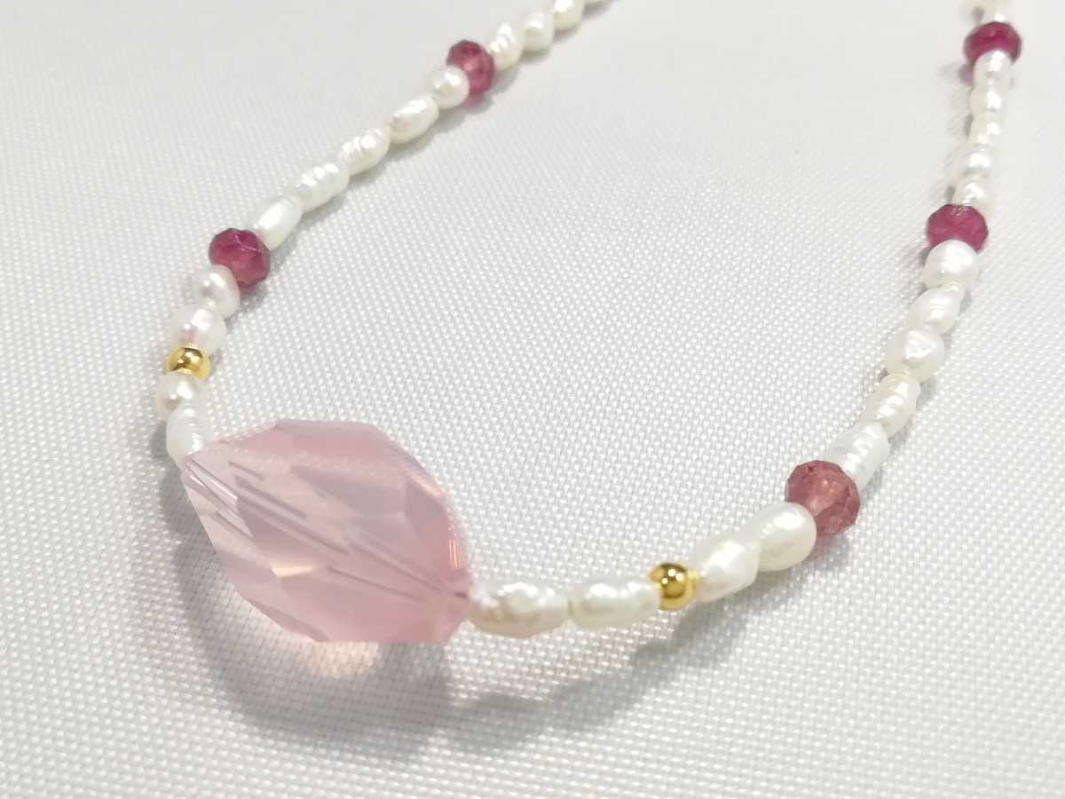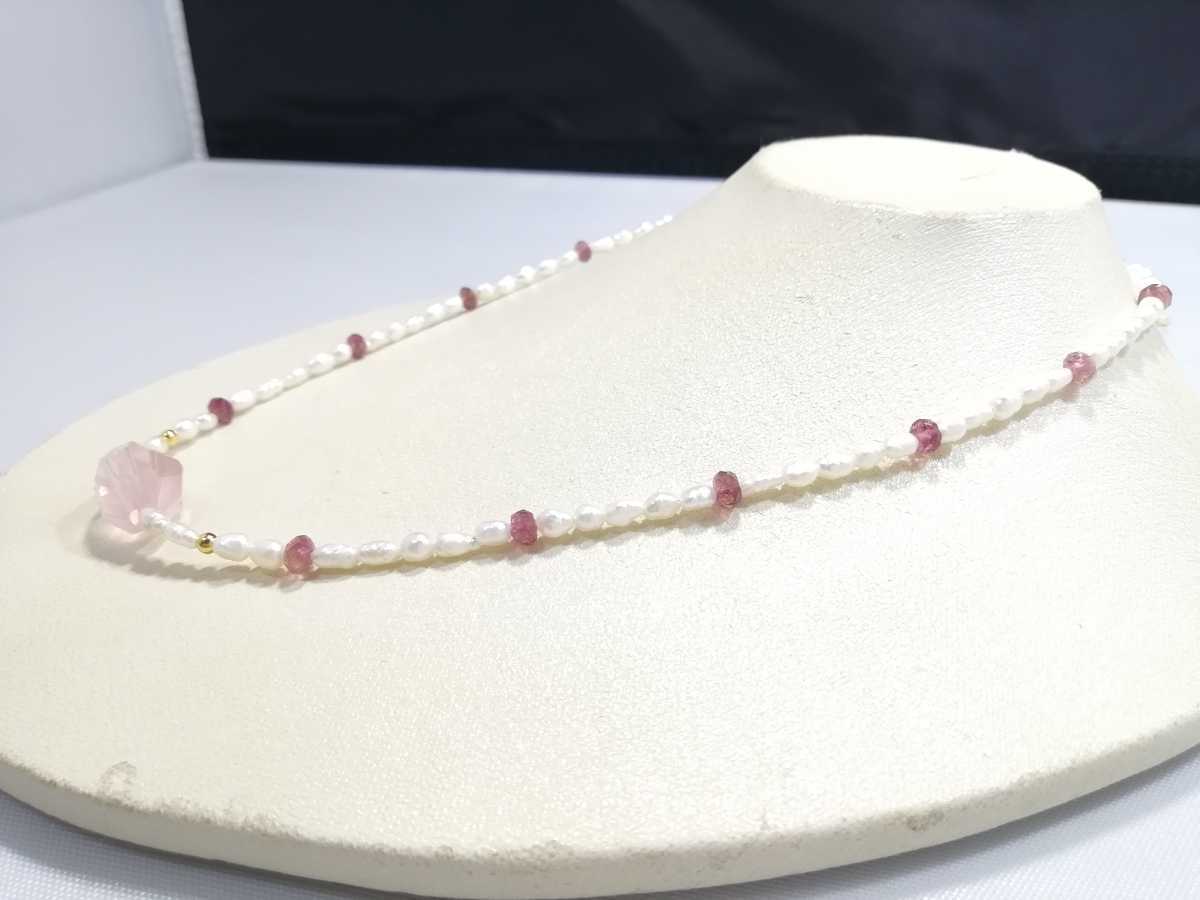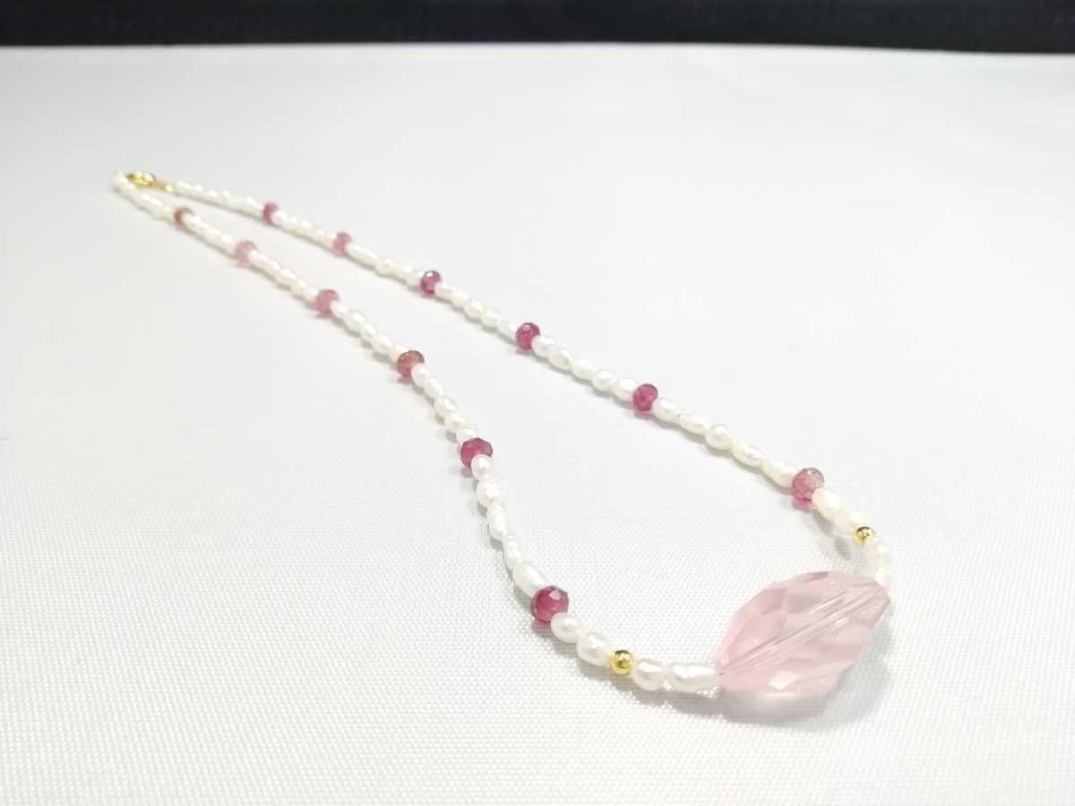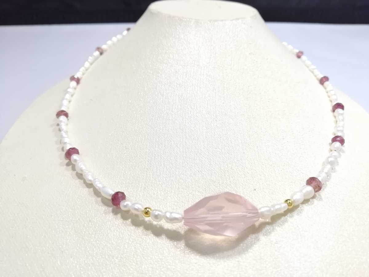淡水パール/ピンクトルマリン/ローズクォーツネックレス 10825