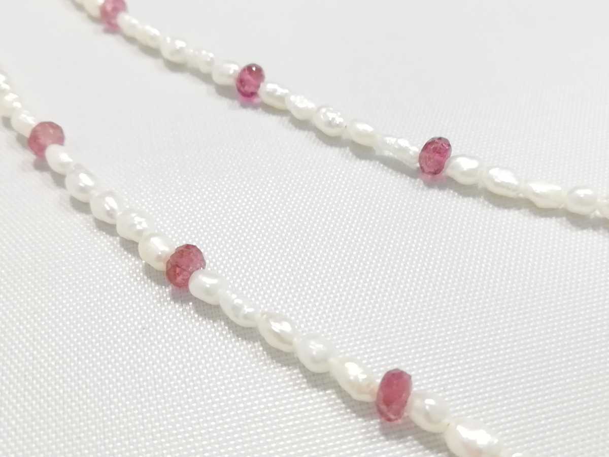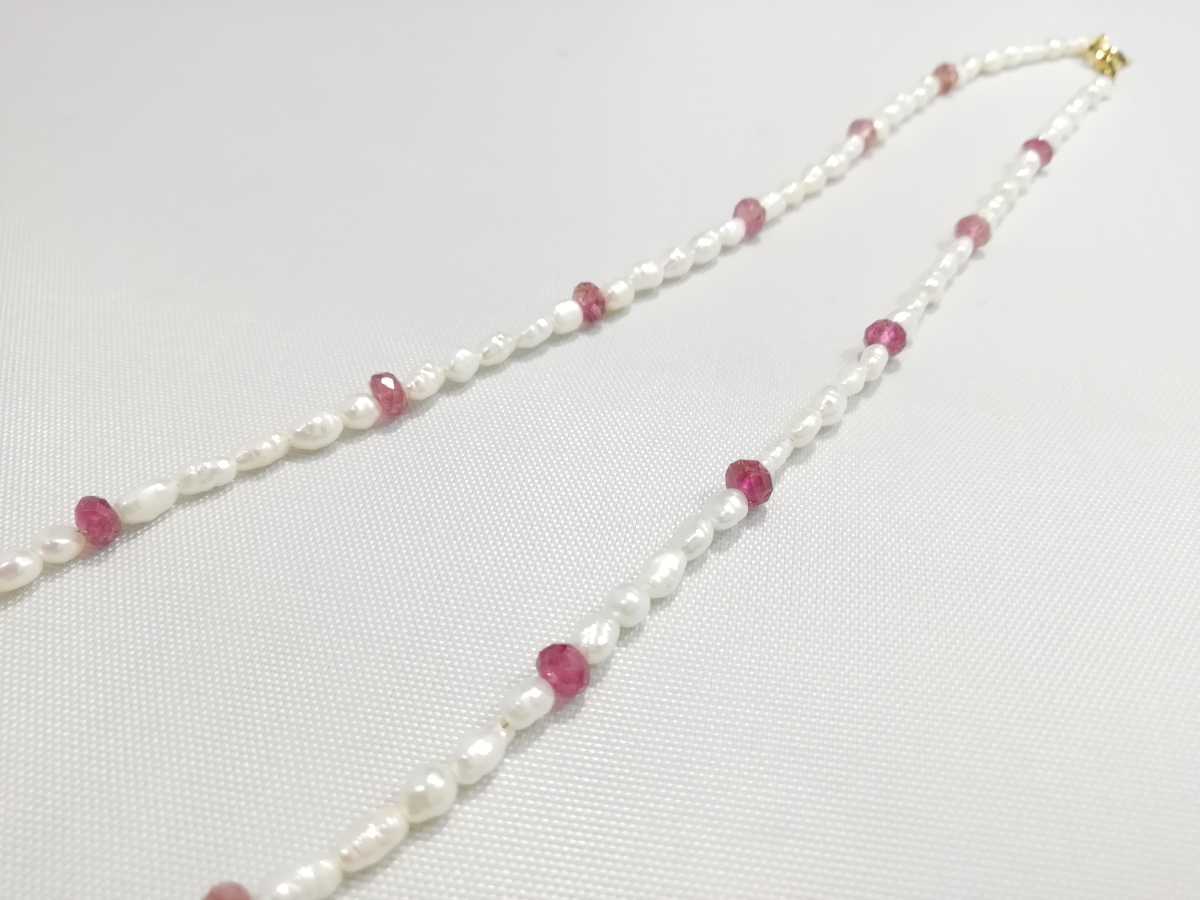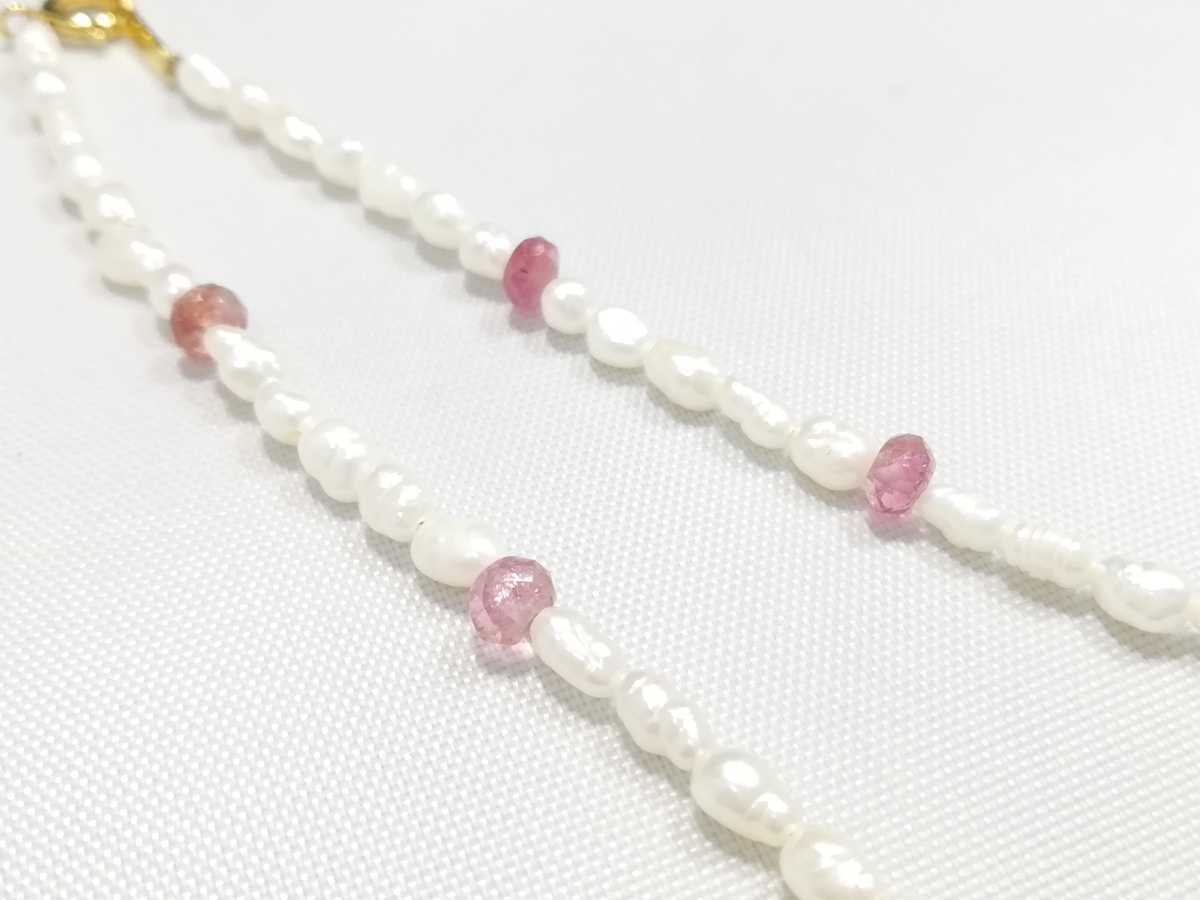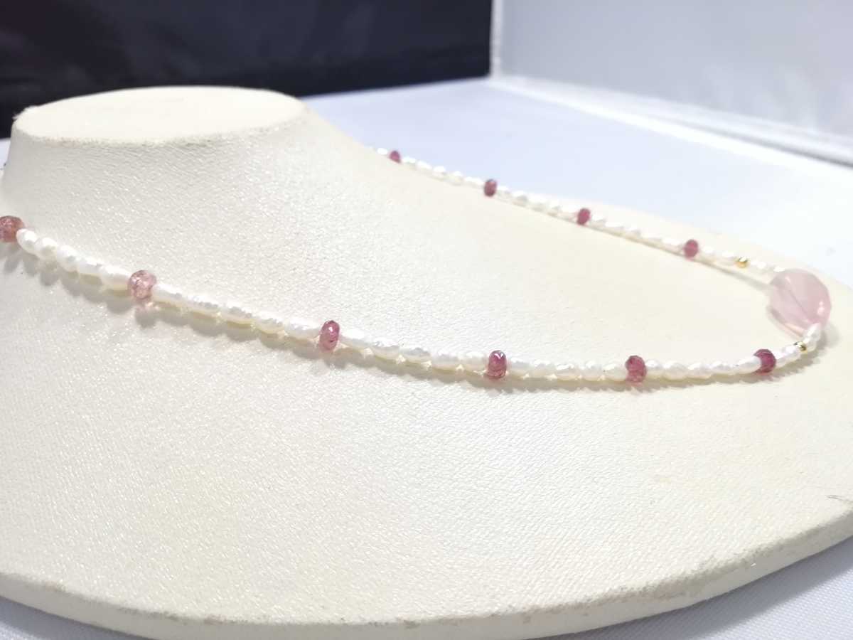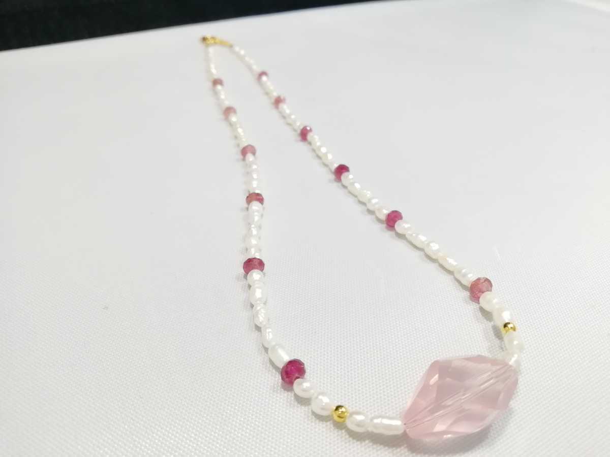 淡水パール/ピンクトルマリン/ローズクォーツネックレス 10825