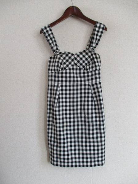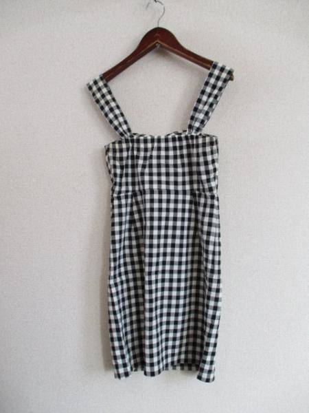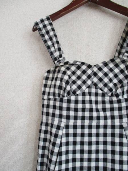 | 商品紹介 | 黒×白のチェック柄ノースリーブワンピースです。 胸下に切替えがあり、スカート部分はタイトです。 肩紐はボタンで留めてあり、取り外してベアトップワンピースとしても使えます。 《素材》 ポリエステル50% 綿50% |