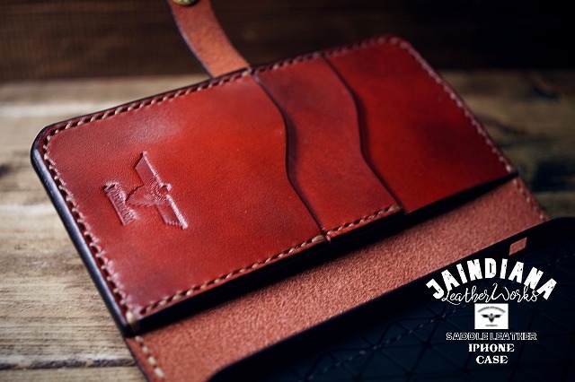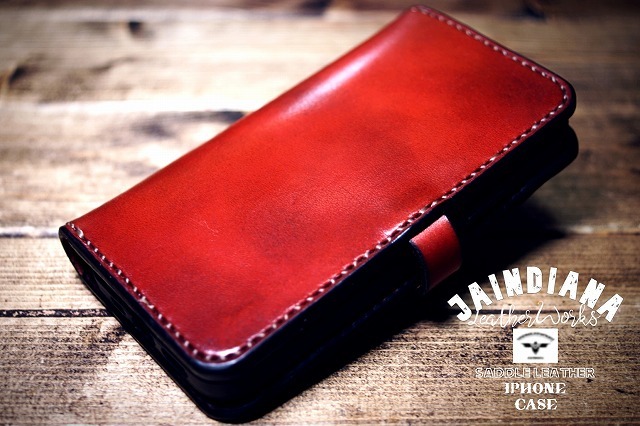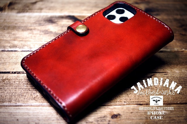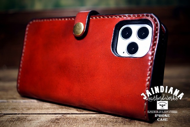 | iPhone14ケース 手縫い サドルレザー 手帳型 ビンテージ染めバーガンディー (14pro・proMAX・14Plus用の製作も可) | ||||