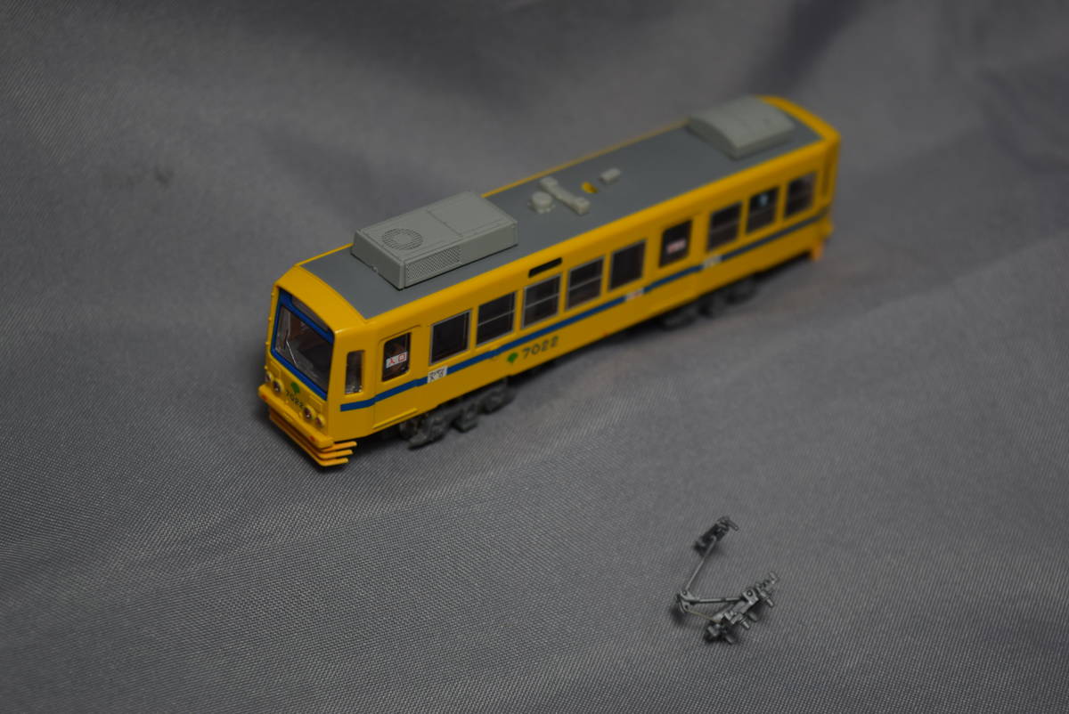 本品は、都内各地を都電が走り回っていた1950年代から荒川線に生き残り、車体更新を受けてつい数年前に引退した7000形で、独特の正面一枚窓、シンプルな側面等の細部が、忠実に再現されています。