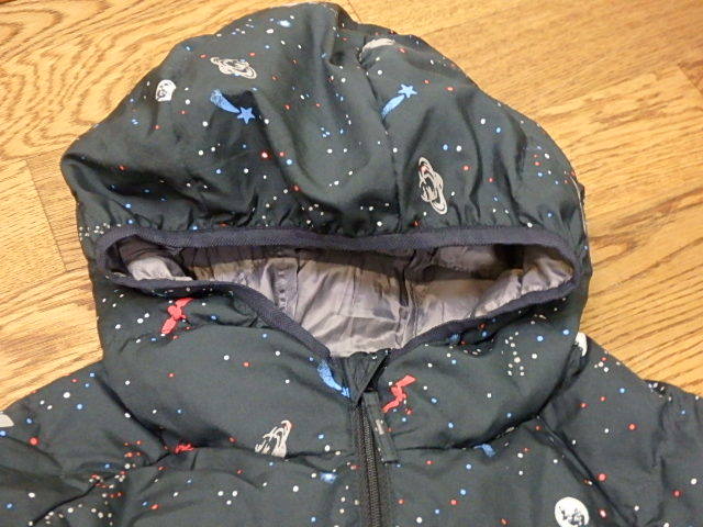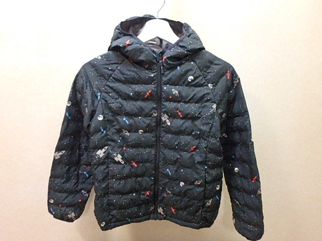 n212k ユニクロ 中綿ジャケット 140サイズ 黒 宇宙柄 キッズ 子供 男の子 女の子 上着 ジャンパー アウター 中古
