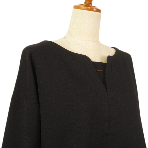 ビームスハート BEAMS HEART カットソー キーネック ストレッチ 黒 ブラック レディース