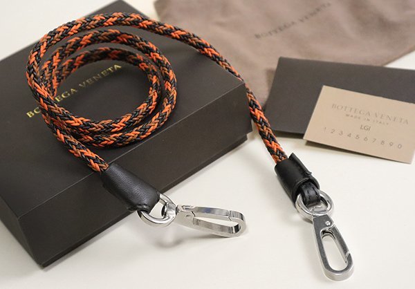 BOTTEGA VENETA ◆ ウォレットコード オレンジ (付属品あり) ストラップ 編み込み ボッテガヴェネタ ◆C1
