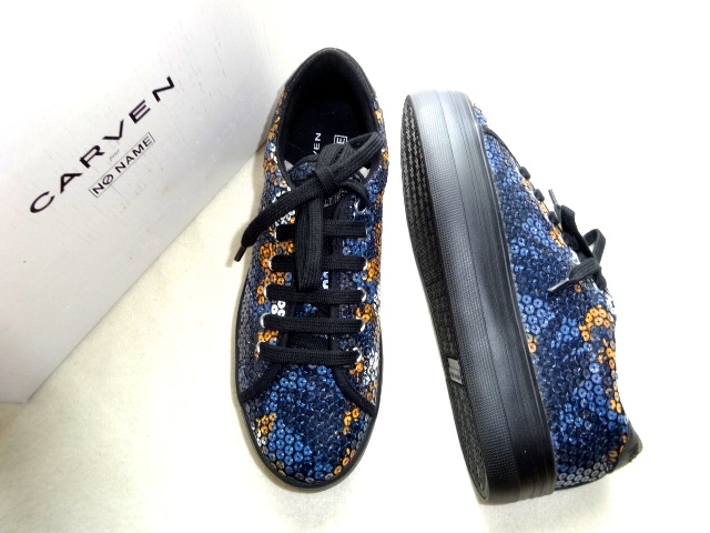 ● CARVEN カルヴェン No NAMEコラボ 黒スパンコール 厚底スニーカー新品 38/24cm